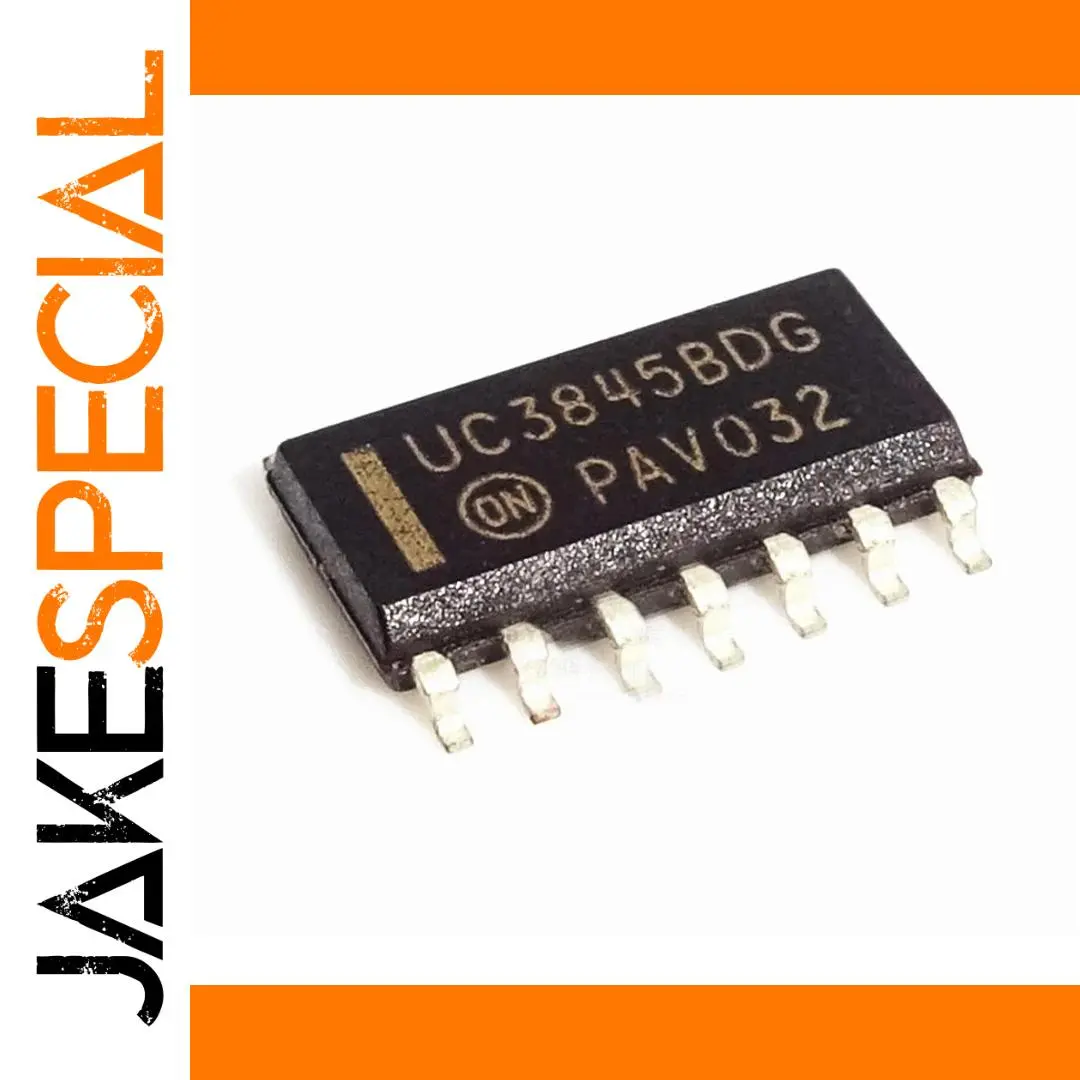 Enhance your power regulation projects with this set of 10 or 5 original UC3845 series IC chips in SOP-14 packages, including models UC3845BDG, UC3845BDR2G, UC3845D, and UC3845DR2G. Each new chip features a sleek, rectangular black body with a matte finish, white printed model information for easy identification, and 14 evenly spaced, silver-colored pins for secure through-hole mounting. Designed for high-performance switching regulator applications, these high-quality components are thoroughly tested to ensure reliability. Packaged in electrostatic bags, with optional brand packaging upon authorization, these chips promise precision and durability for advanced electronic projects.