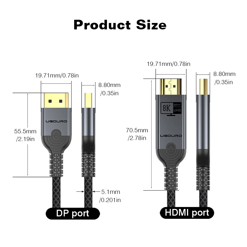 Keys features of the UGOURD 4K DP to HDMI Cable