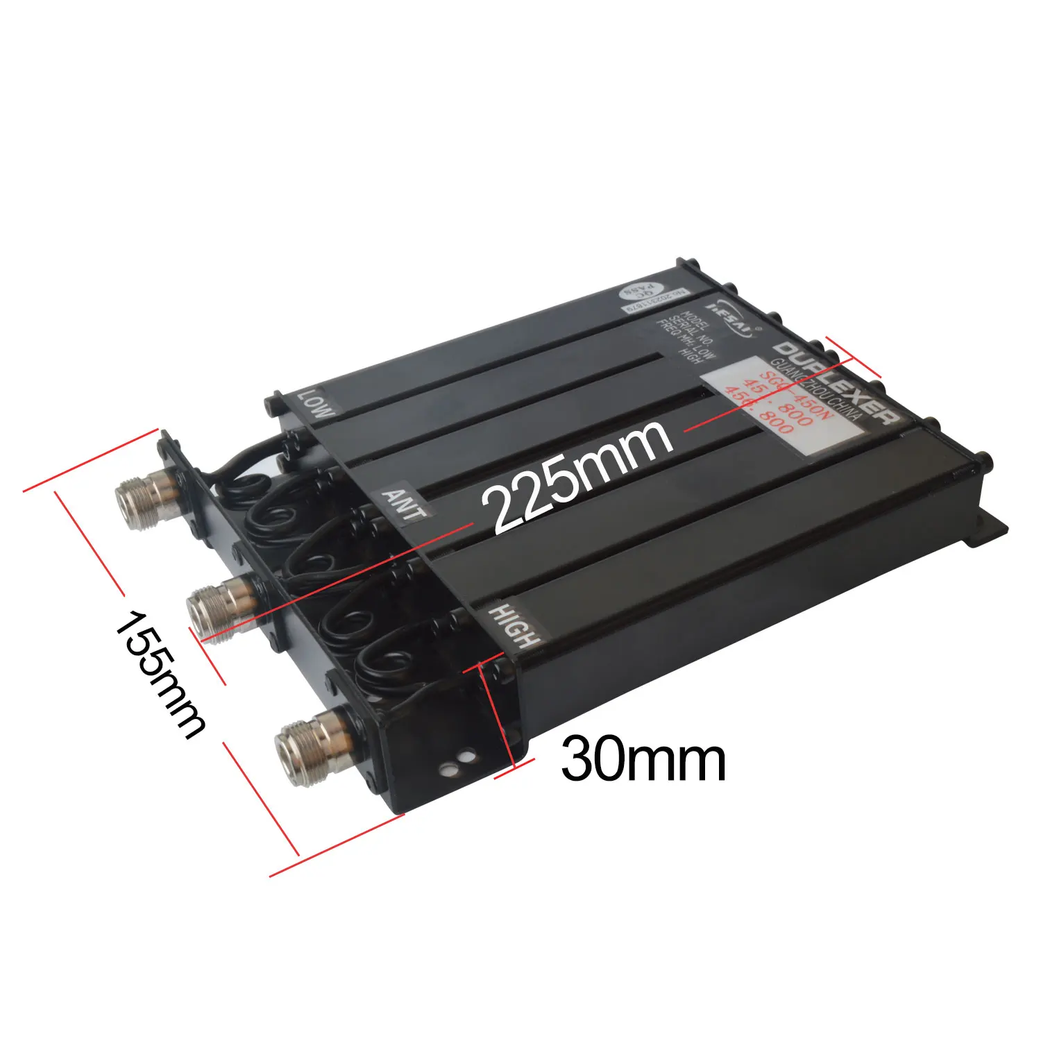 Step into the world of advanced radio communication with this meticulously crafted 30W UHF walkie talkie repeater duplexer. Its sleek black metallic finish combines durability with a professional, industrial look that complements your radio setup. Designed with precision, it features five vertical connection sections clearly labeled for easy setup—”LOW,” “ANT,” “HIGH”—making installation seamless. The sturdy N female SO239 connector ensures reliable, high-quality connections. Compact yet powerful, it measures approximately 225mm by 155mm by 30mm, weighing only 1.2kg, making it suitable for a range of professional uses. Its precise engineering enables optimal signal separation and minimal loss, guaranteeing clear, efficient communication for your repeater network.