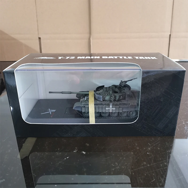 Imagine adding a striking military replica to your collection, showcasing the rugged elegance of the Ukrainian T-72AV main battle tank. Crafted with precision, this 1:72 scale model highlights intricate surface textures, including armored panels, hatches, and external equipment. Its sleek, angular silhouette, painted in subdued shades of olive green and gray, exudes a modern and formidable presence. Housed in a transparent display case, the model is ready for immediate placement on shelves or desks, instantly elevating your decor or collection. Designed for adult enthusiasts, this fragile yet stunning collectible is perfect for display, showcasing craftsmanship and realism that captivate and inspire admiration from all viewing angles.