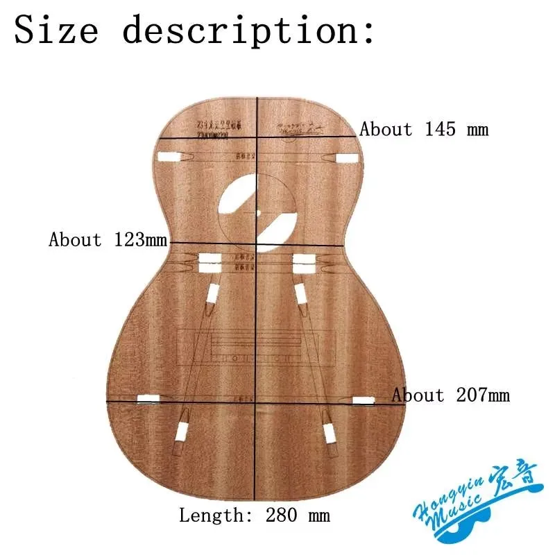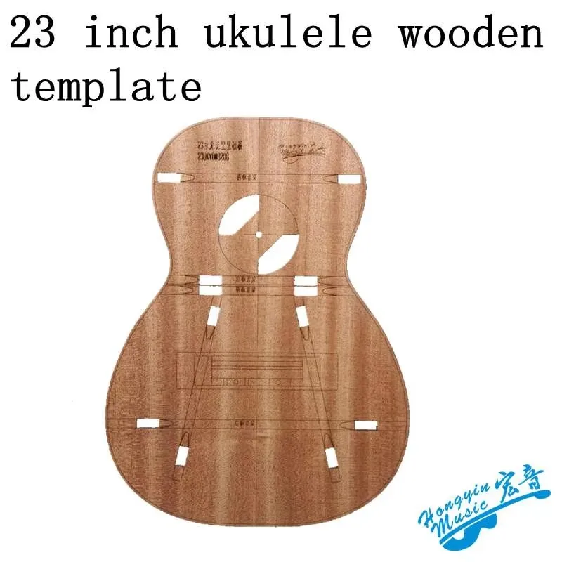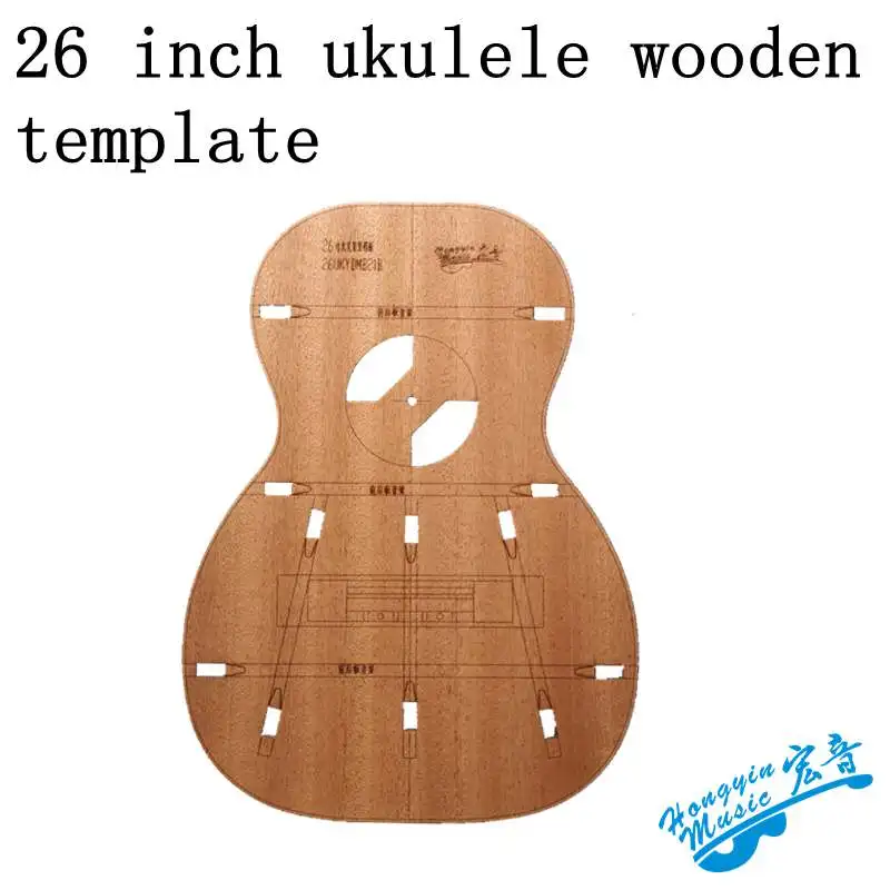These 23-inch and 26-inch ukulele wooden templates are crafted from durable three-layer plywood with a 3mm thickness, designed specifically as guitar making molds. They feature ergonomic, smooth contours resembling small acoustic guitars or ukuleles, with clear engraved or printed lines and labels for precise shape and sound hole placement. The natural wood finish highlights the layered plywood, emphasizing an organic, minimalist aesthetic. Ideal for hobbyists or luthiers, these templates facilitate accurate and efficient construction of ukuleles, ensuring professional results with their well-calibrated guides and exact dimensions. Trust these durable, precisely crafted molds to streamline your instrument-making process and bring your musical project to life.