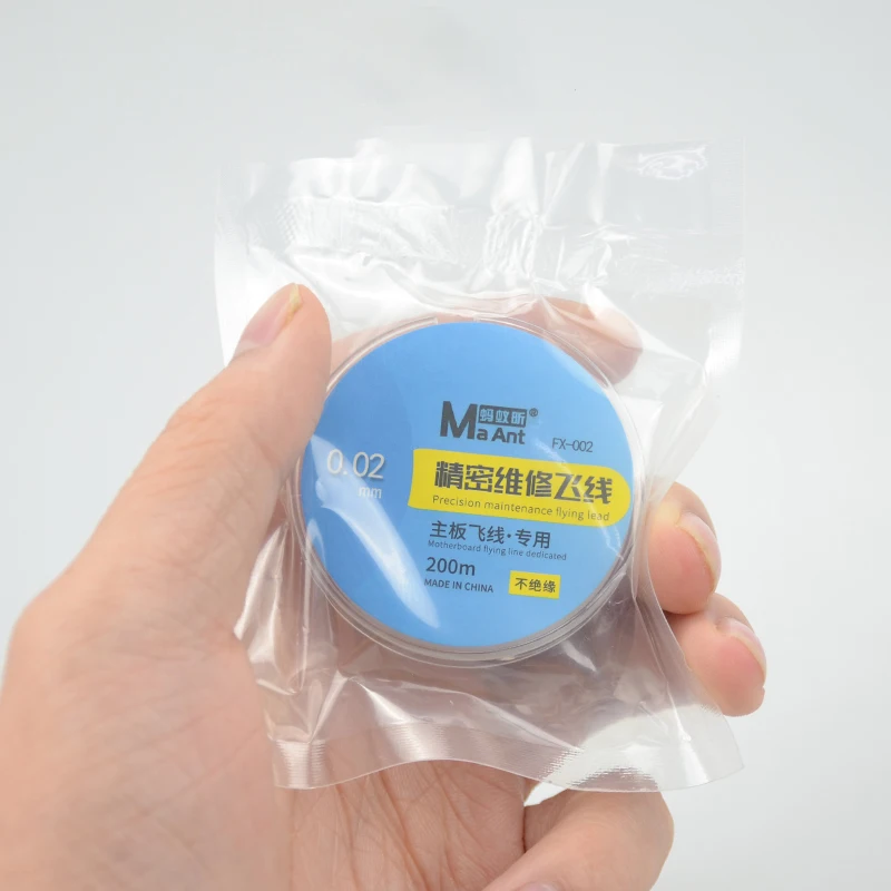 - Technical specifications include: 0.009mm, 0.01mm, and 0.02mm diameter options, each 200 meters in length, crafted for precise, fine-scale electronic repairs.