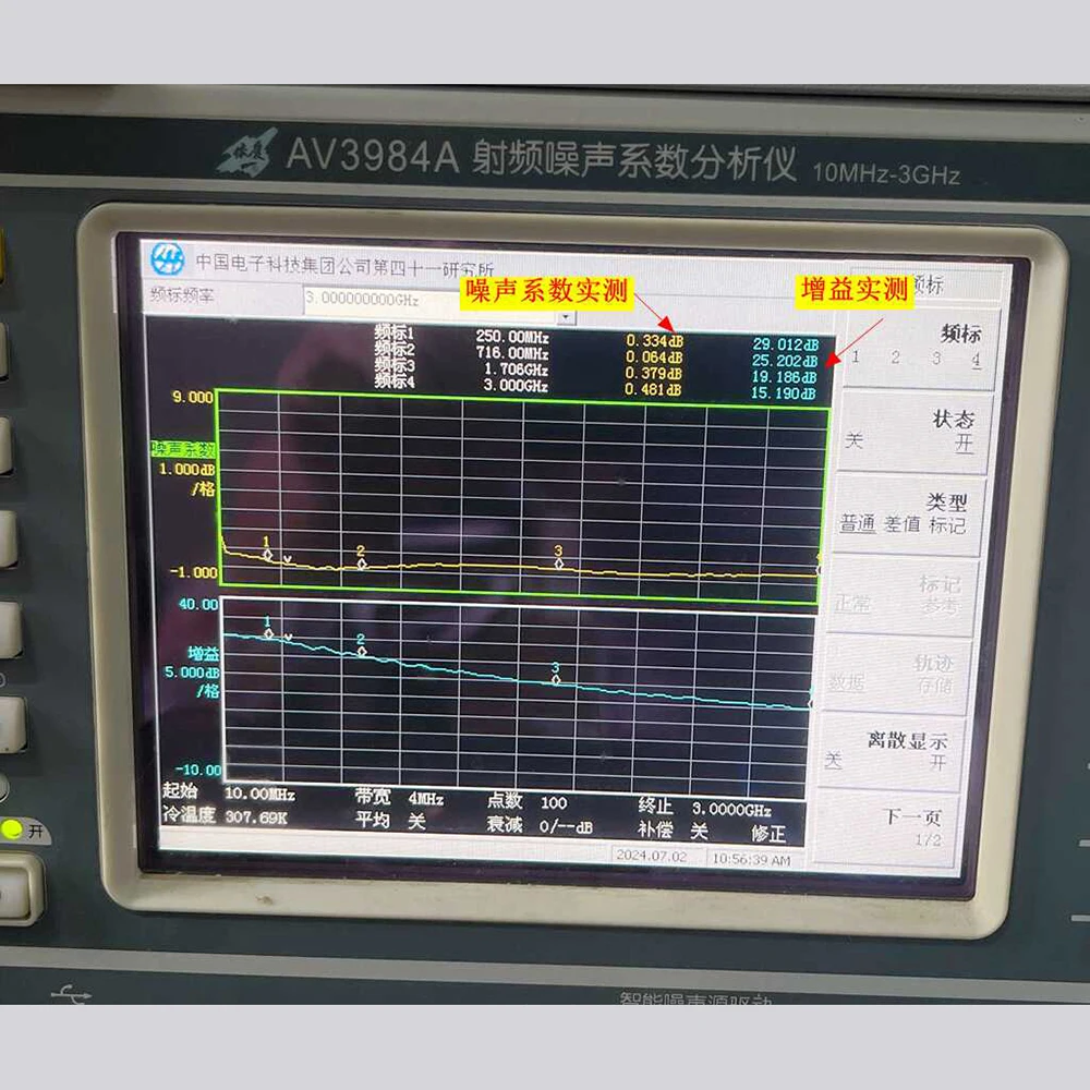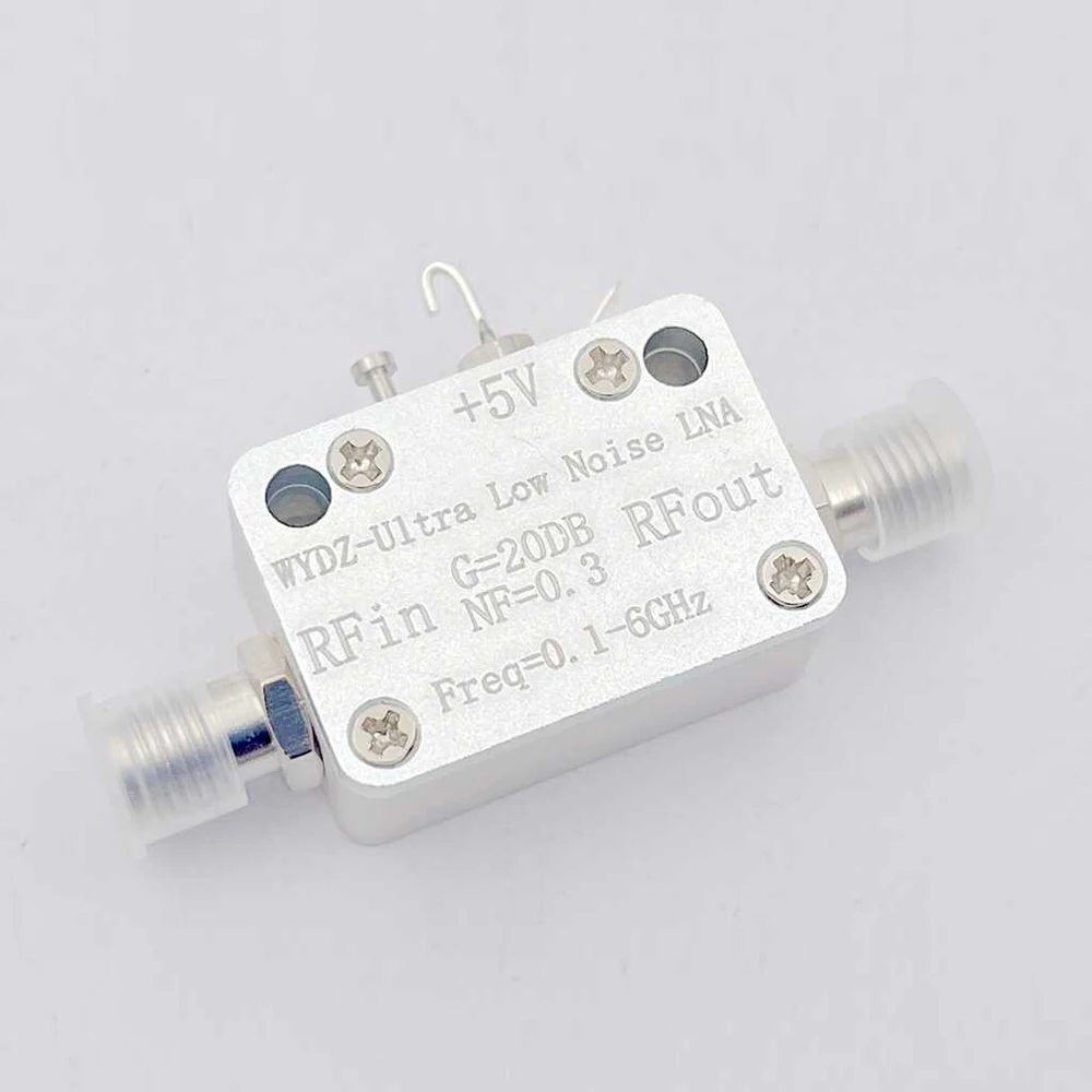 Experience high-performance amplification with this ultra-low noise RF power amplifier, operating from 100 MHz to 6 GHz. It features a compact size of 26 x 18 x 12 mm (excluding SMA connector), with 50-ohm input and output impedance via a 3.5 mm SMA female interface. Capable of delivering 20 dB gain at 200 MHz and boasting a noise figure of just 0.3 dB at 2 GHz, it provides an output power exceeding 20 dBm (P1dB). Operating on 5V with a 70 mA current, this versatile module is ideal for broadband receiver low-noise applications, local oscillator driver stages, and system integration, ensuring reliable, high-quality signal amplification across a broad frequency range.