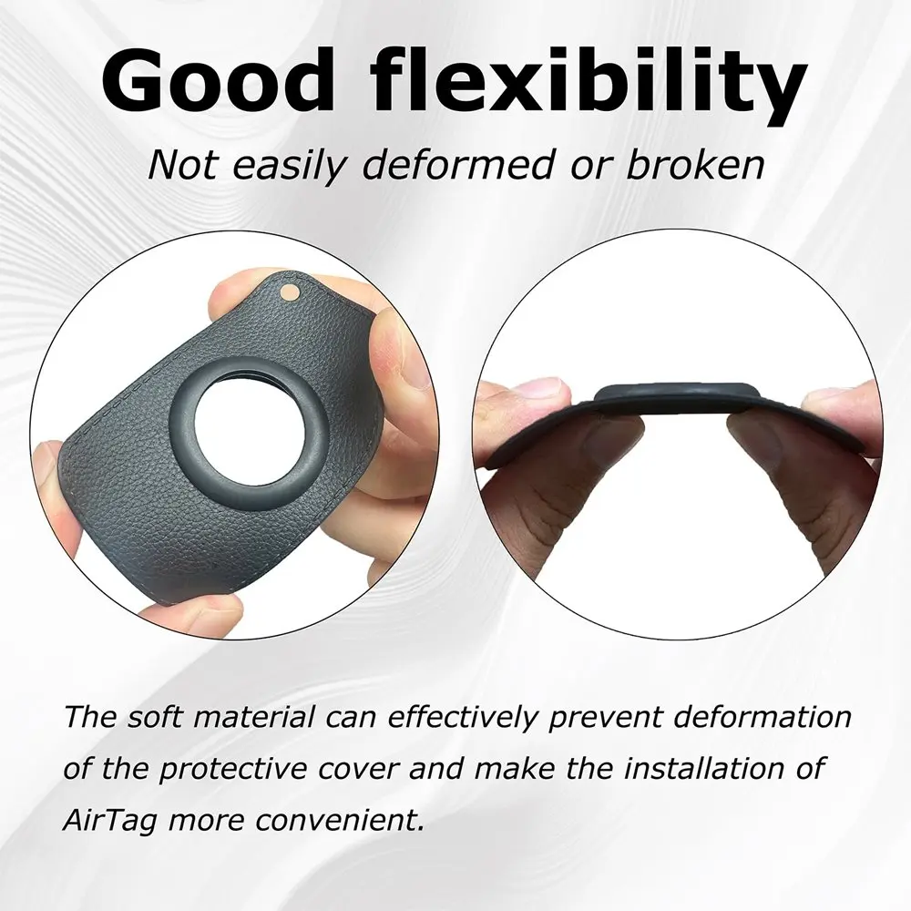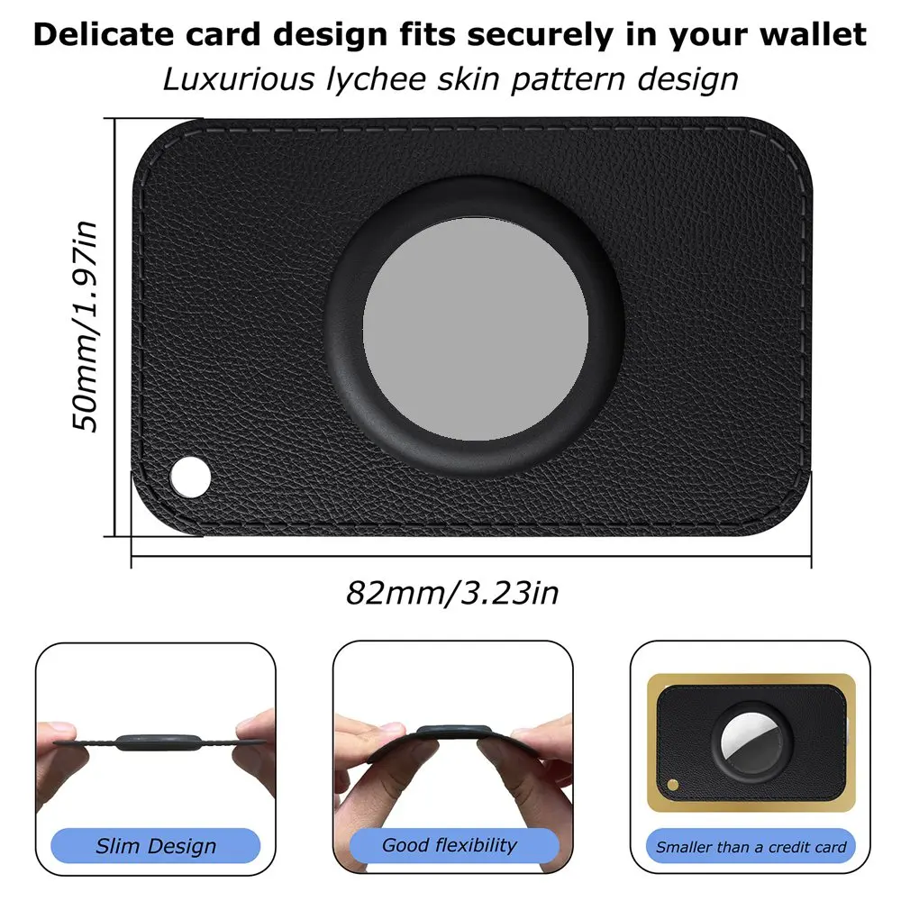 Experience ultimate protection and style with this ultra-slim TPU Airtag case, measuring only 0.1″ thick. Crafted with a durable leather-like exterior, it features a sleek card-shaped design that fits comfortably in most wallet slots. The case fully encloses the Airtag, preventing loss while allowing seamless signal transmission. Available in classic black, brown, pink, and white, it includes a reinforced hole for key ring attachment, making it perfect for wallets, keys, backpacks, and handbags. Its minimalist, lightweight profile combines practicality with aesthetic appeal, providing a secure and fashionable accessory for everyday use.