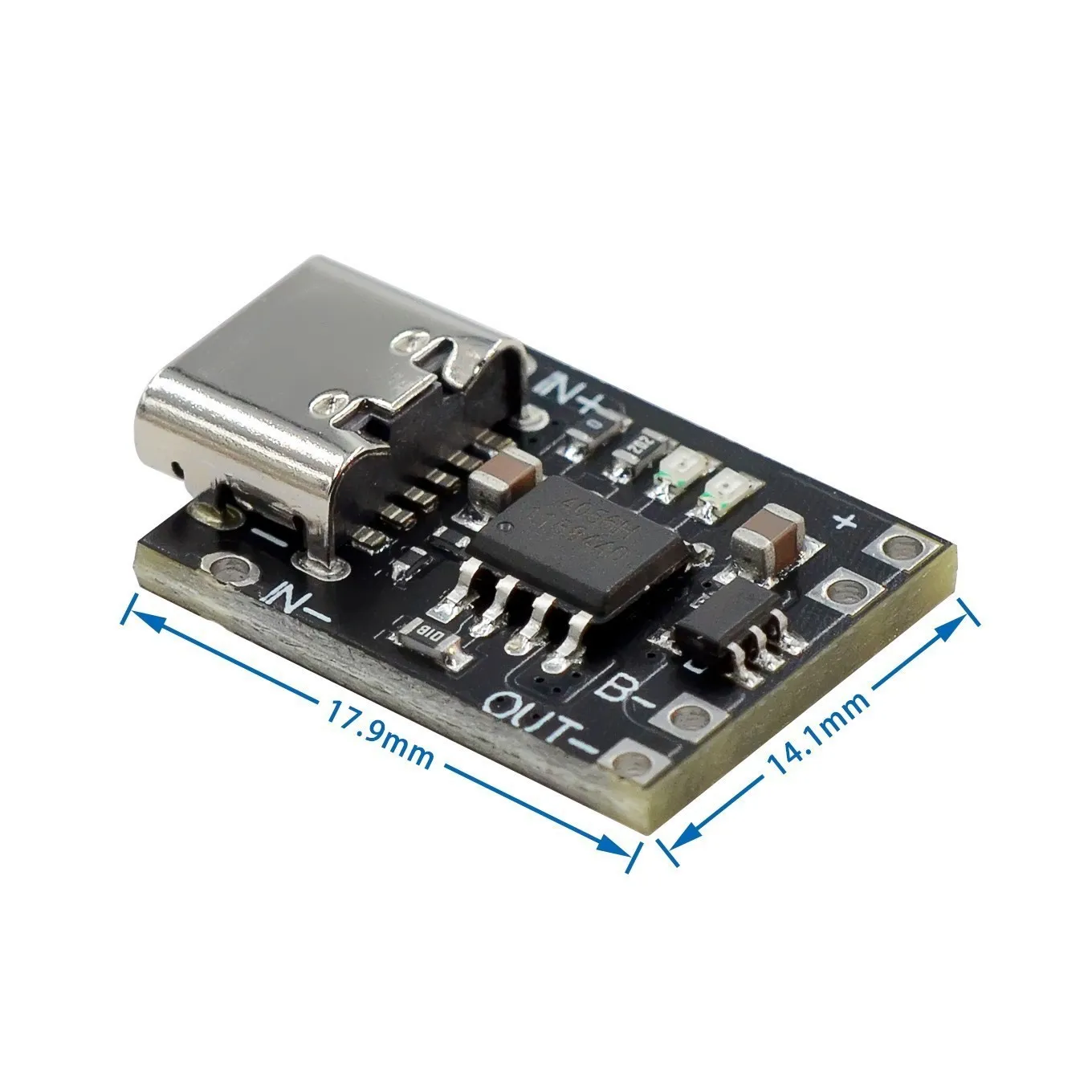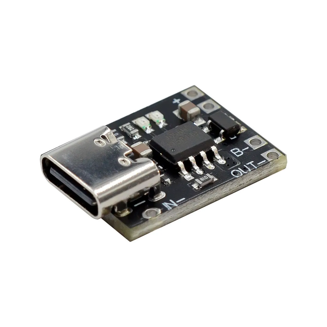 Experience the convenience of this ultra-slim, compact lithium battery charging module, perfect for DIY projects and electronic modifications. With a sleek 0.6mm profile and a minimalist rectangular design, it seamlessly integrates into small devices. The module features a durable, matte black PCB with crisp white markings indicating connection points. Its metallic USB Type-C port adds a modern industrial touch, making charging effortless. Built for reliability, it supports a 5-6V power supply and delivers a consistent 1A current output, suitable for 3.7V to 4.2V lithium batteries, including popular 18650 and pack configurations. Designed with overcharge, overdischarge, and voltage protection, this module ensures safety and longevity for your battery-powered projects.