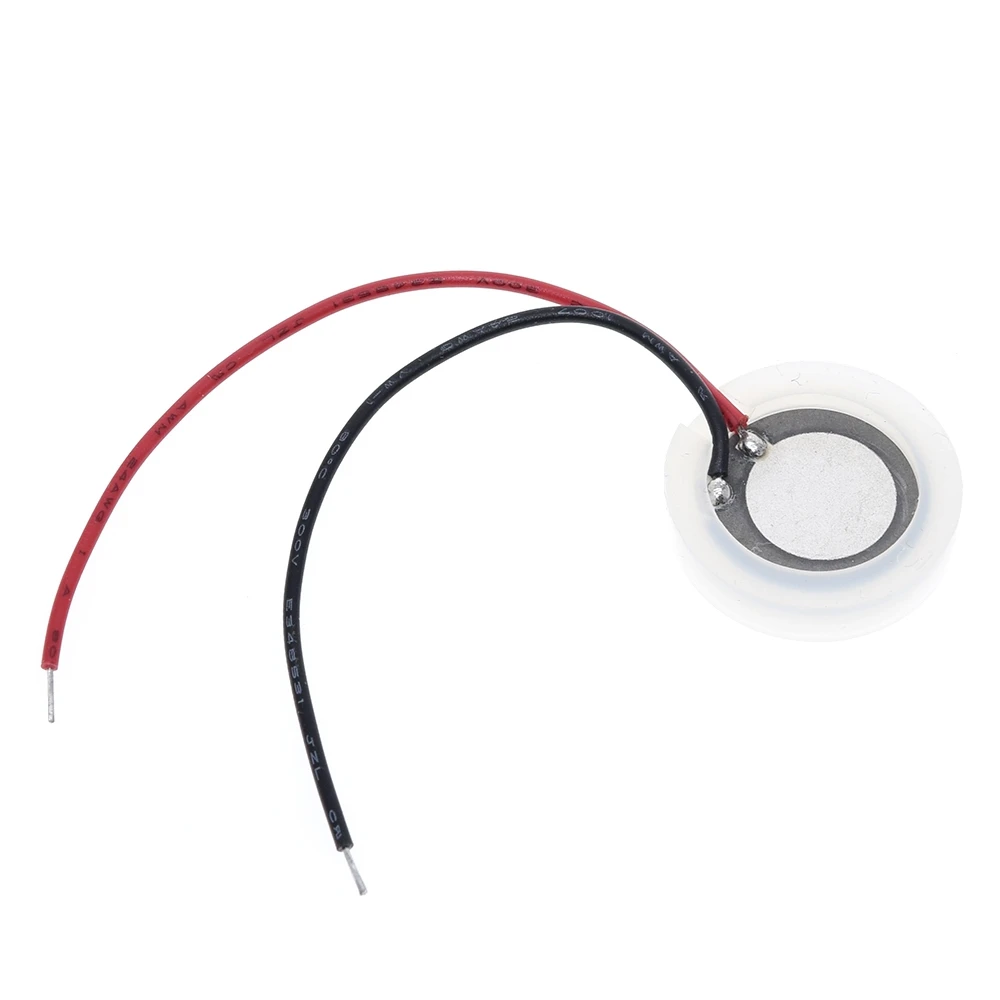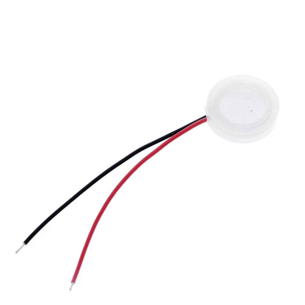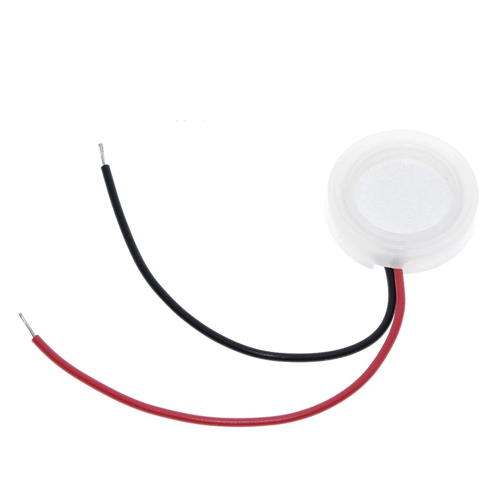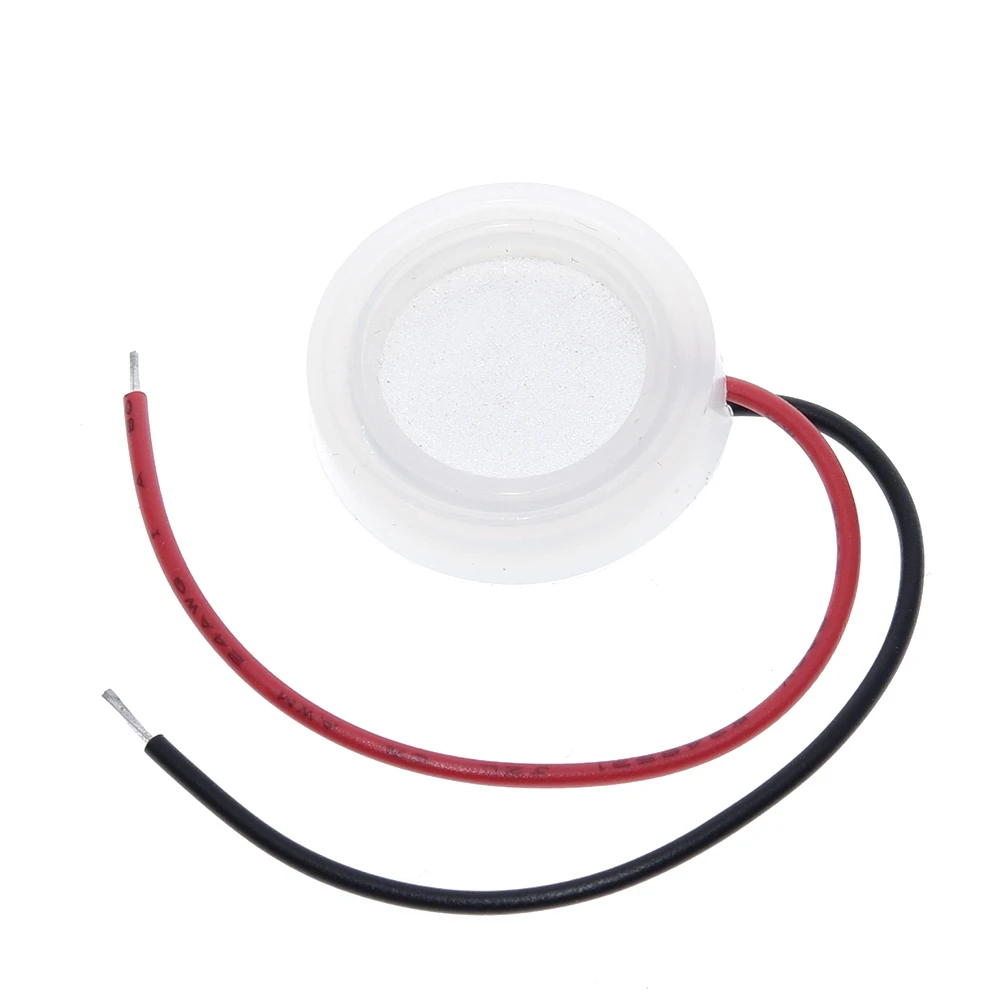 Experience the clarity and efficiency of this sleek, white ultrasonic mist maker transducer designed for precise fog and humidification applications. Its compact, circular ceramic disc features a smooth, slightly convex surface that ensures even ultrasonic vibration, producing a fine mist effortlessly. The lightweight construction and durable ceramic material make it an excellent choice for integrating into humidity and fog generating systems. The transducer’s minimalistic aesthetic, complemented by the insulated red and black wires, blends seamlessly into your projects, offering a modern, high-tech look. Whether for creating atmospheric effects or humidifying environments, this device enhances your setup with reliable, high-performance operation. Imagine effortlessly adding consistent fog effects with this sophisticated component perfectly installed and working flawlessly in your system.