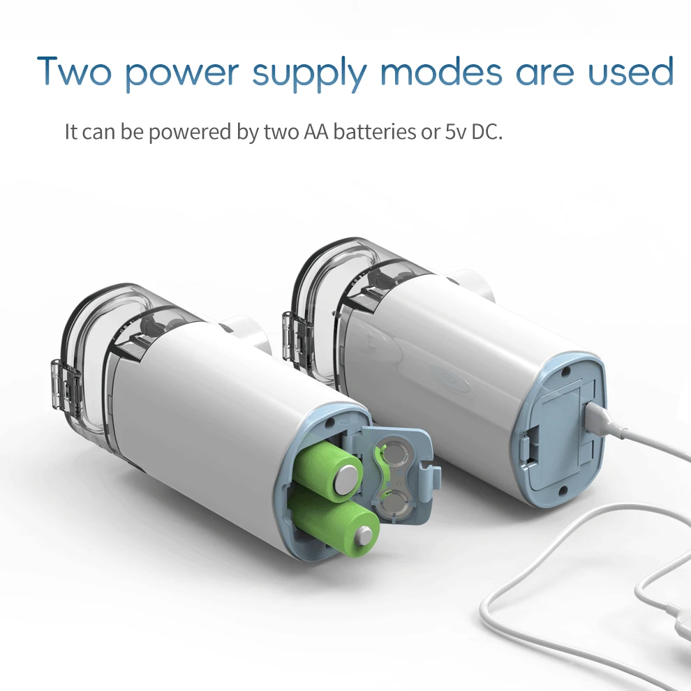 - Includes disposable adult and child masks, a universal nozzle, and features dual power supply options—USB DC5V charging and two AA batteries (not included)—for versatile, on-the-spot use.