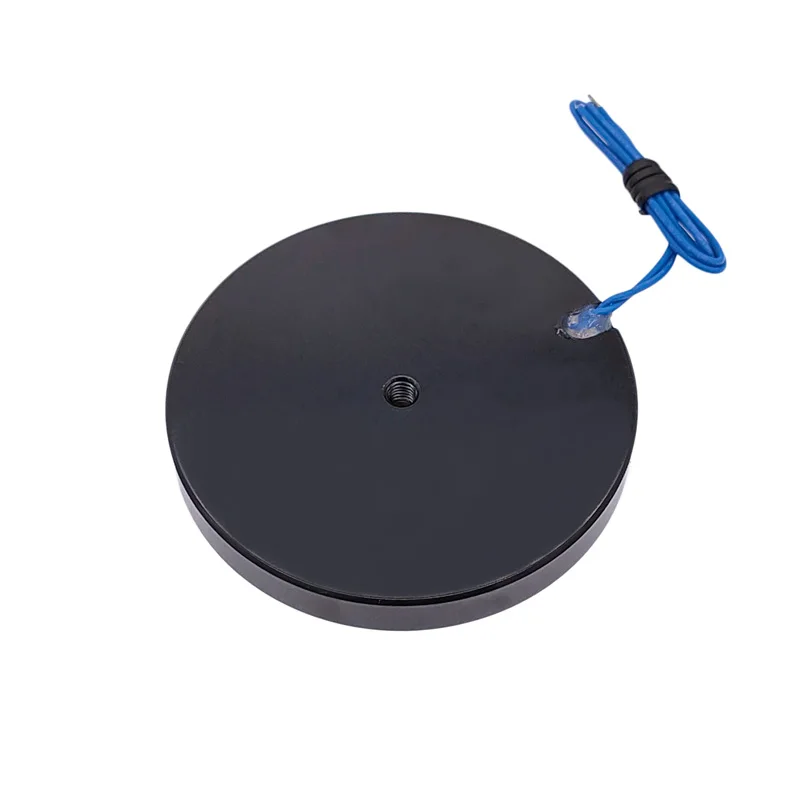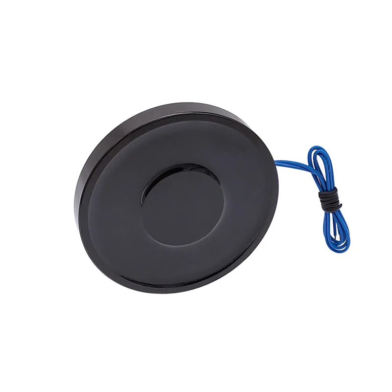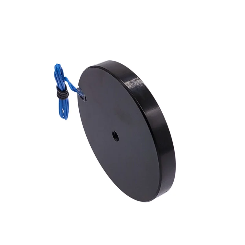 Imagine effortlessly lifting and holding objects up to 25kg with this sleek, high-quality electromagnet. Its ultrathin, disc-shaped design seamlessly blends into industrial and automation setups, offering a modern, minimalist look. The glossy black finish gives it a refined, professional appearance, while the smooth, polished surface ensures durability and easy cleaning. With its compact profile, it’s ideal for applications where space is limited but reliable strength is essential. The device features a centrally raised coil housing and a blue power cable secured neatly on one side, adding a touch of vibrant contrast. Designed for quick, secure magnetic adhesion, it delivers the power needed without unnecessary bulk or complexity, making your tasks smoother and more efficient.