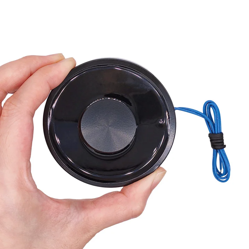 - Its round shape with a central coil housing and smooth surfaces eliminates protrusions or switches, emphasizing simplicity, elegance, and ease of use in complex setups.