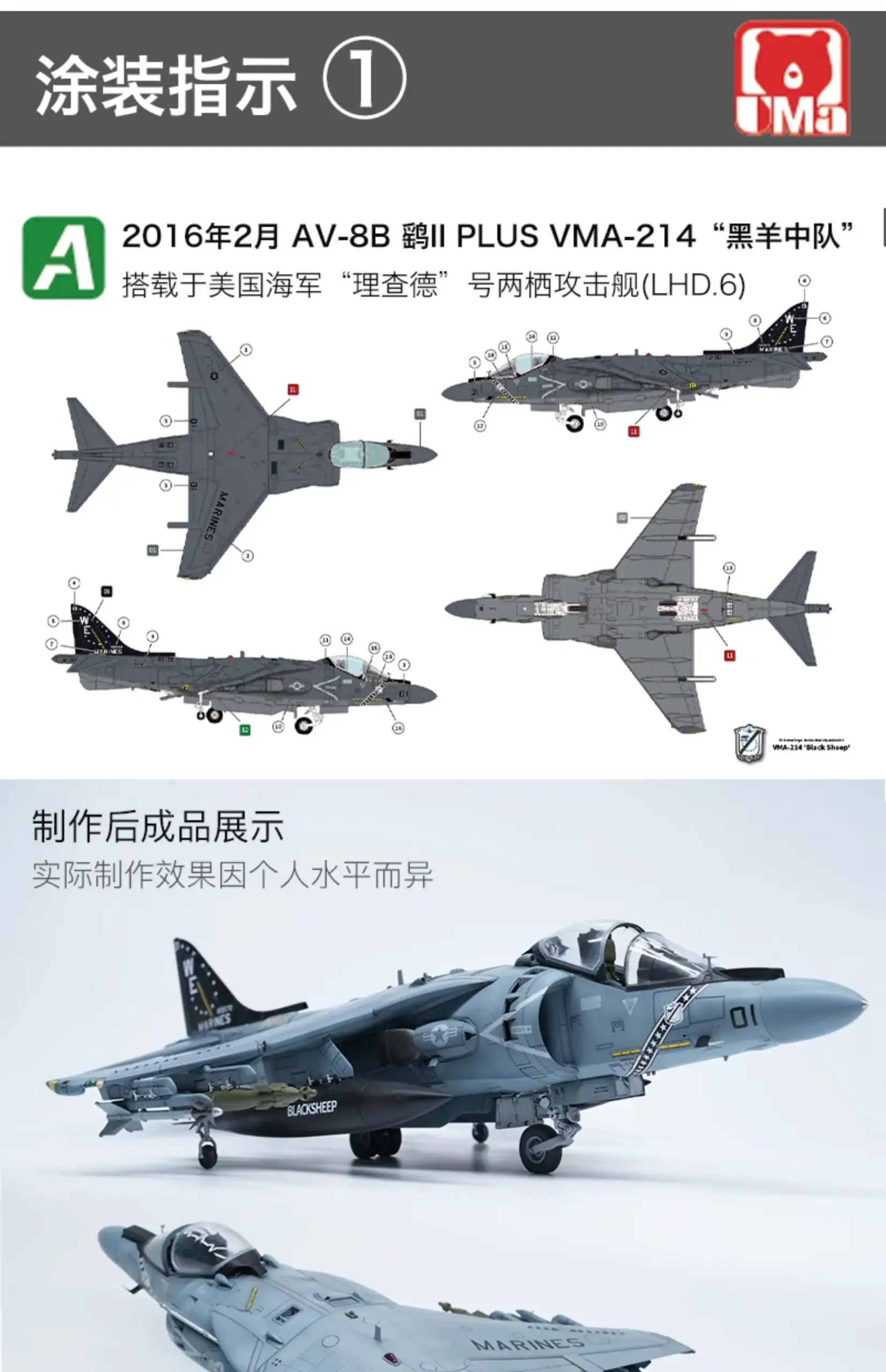 Immerse yourself in the world of aviation with the UMa Assembled Aircraft Model Kit D1001, featuring the American AV-8B Harrier II PLUS Attack Aircraft at an impressive 1:48 scale. Crafted from high-quality plastic, this model presents an authentic representation of the iconic aircraft, boasting a striking gray color scheme typical of military jets. The kit requires your creativity and skill for assembly, allowing you to take pride in constructing a detailed replica. As you work with the necessary tools, glue, and paint, you'll embrace the challenge and joy of bringing this remarkable aircraft to life, making it a prized addition to your collection.