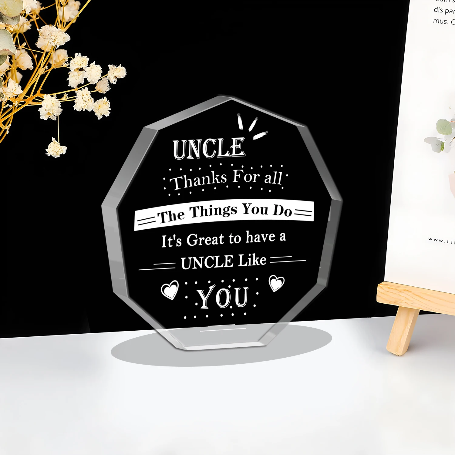 Stand out in your gift-giving by choosing this stylish and heartfelt keepsake. Its elegant design and personalized message make it a perfect token of appreciation. Whether for birthdays or Christmas, this durable plastic souvenir is sure to bring joy and smiles. Imagine your uncle receiving this meaningful gift — a symbol of your love, gratitude, and special bond. Act now to add this exceptional keepsake to your collection of treasured gifts for family members. Express your sentiments with a gift that truly speaks from the heart and makes lasting memories.