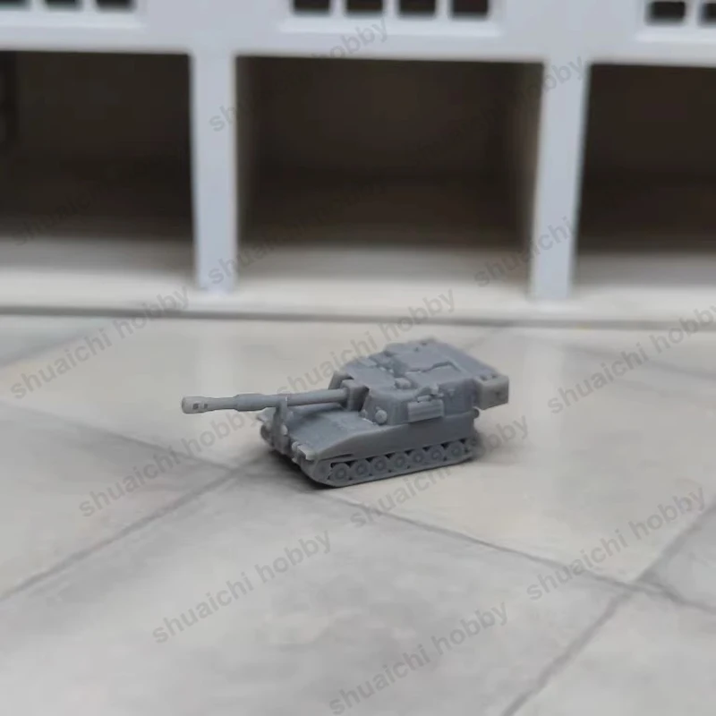 Enhance your model collection with these 5 uncolored resin parts of the M109A6 self-propelled tank, perfect for DIY enthusiasts. Available in two scale sizes: 1/700 with a length of 1.32 cm and 1/350 measuring 2.63 cm. Crafted through precise 3D printing with high-quality resin, each part showcases detailed surface textures, including the tank hull, turret, gun barrel, tracks, and hatch, making assembly and customization enjoyable. Designed for ages 14 and above, the models can be easily repaired if slightly bent by heating. Suitable for hobbyists seeking realistic, detailed military vehicle models.