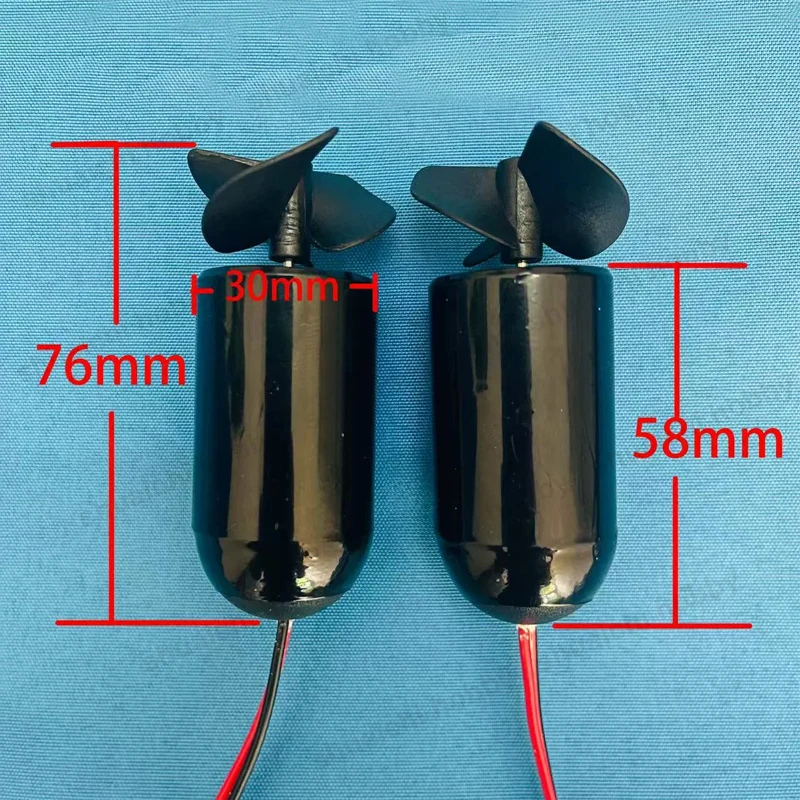 Imagine upgrading your RC bait boat or submarine with this high-performance pair of underwater thrusters. Crafted from durable composite material, each thruster features a polished, black cylindrical body with a smooth, streamlined finish that exudes modern elegance. The broad, curved three-blade propellers are black as well, designed for efficient underwater propulsion. With a KV rating of 1100, these thrusters operate smoothly across three voltage options: 3-6V (9000rpm, 10W), 6-9V (12000rpm, 25W), and 9-12V (16000rpm, 30W). Their compact size and rugged design make installation seamless, letting you bring your underwater projects to life with reliable power and style.