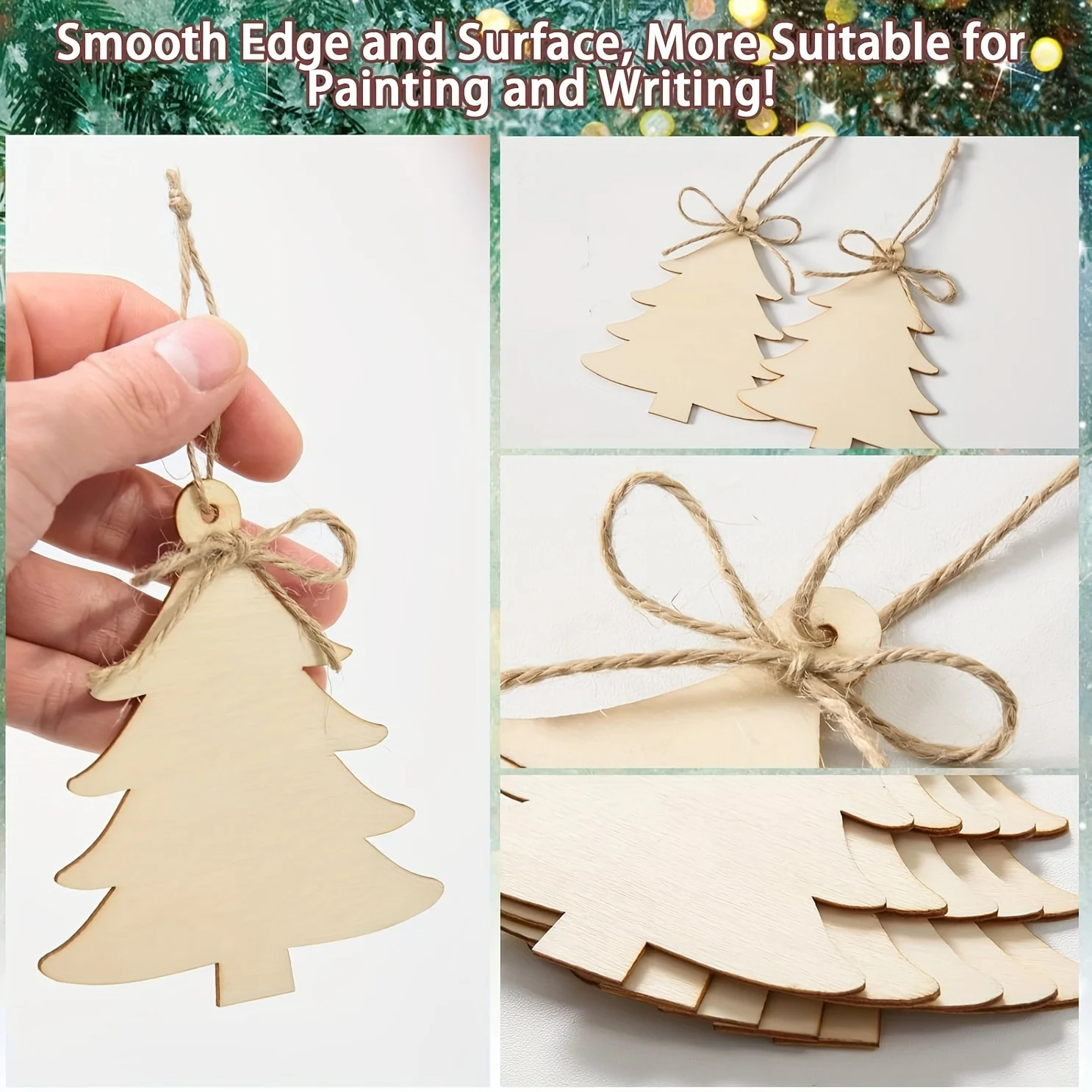 Imagine transforming simple wooden ornaments into personalized holiday decorations that truly reflect your creativity. This set of ten unfinished wooden Christmas tree ornaments measures about 3″, crafted from high-quality natural wood. The laser-cut design and smooth sanding on both sides make them perfect for painting, staining, or decorating with your own unique style. As you craft, enjoy the rustic charm these ornaments bring, blending natural beauty with your artistic touch. Whether creating memorable gift tags, personalized embellishments, or festive table numbers, these versatile pieces help ignite your holiday spirit. With easy-to-use jute twines included, your finished decorations are ready to hang and admire, turning your DIY ideas into cherished seasonal keepsakes.