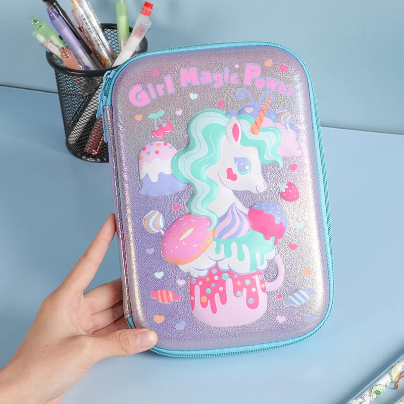 This enchanting Unicorn Pencil Case is designed for those who adore whimsy and charm. With a size of approximately 22 cm x 15 cm x 4.5 cm, it’s perfect for storing your school or office supplies. Made from durable EVA material, it thrives in a kawaii aesthetic, adding joy to your everyday routine. Each pencil case features delightful unicorn themes, surrounded by sweet illustrations that spark creativity. Plus, you'll love the bright colors that lighten your workspace. Imagine organizing your stationery in this vibrant pencil case, showcasing your personality while encouraging fun and inspiration.