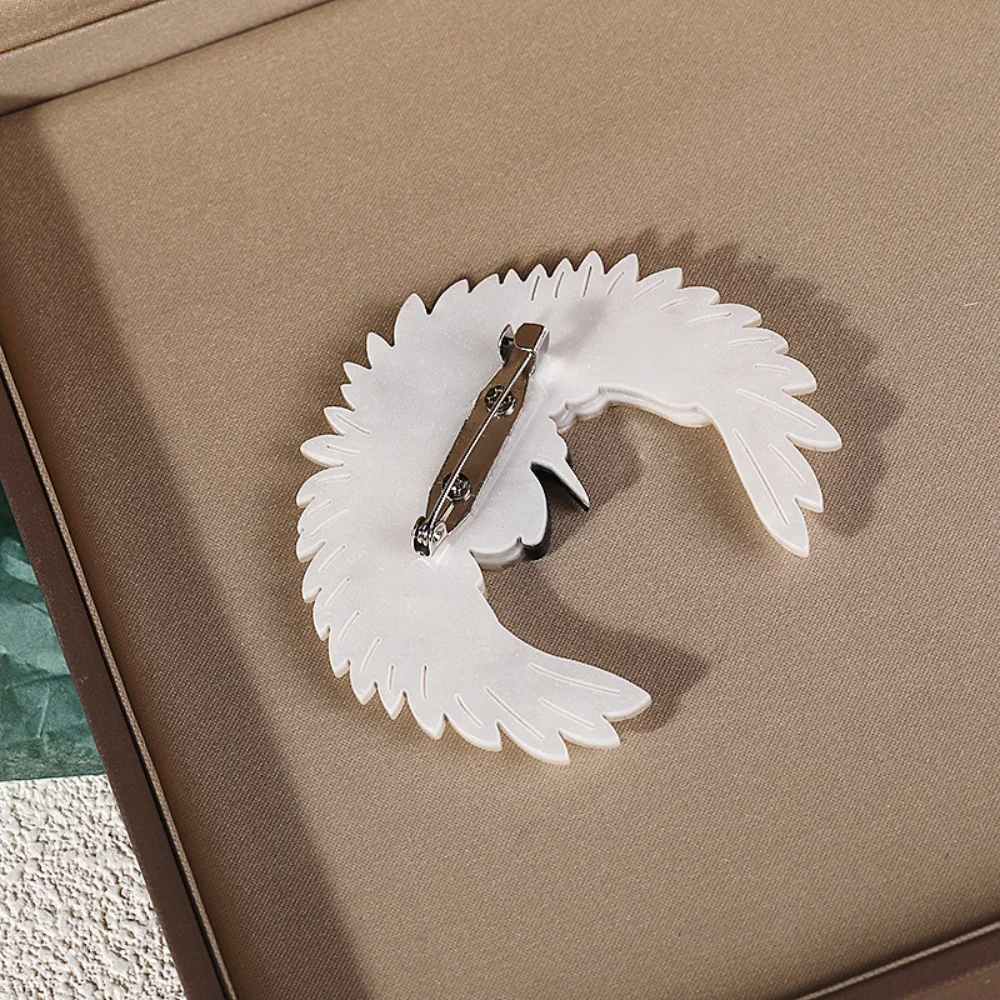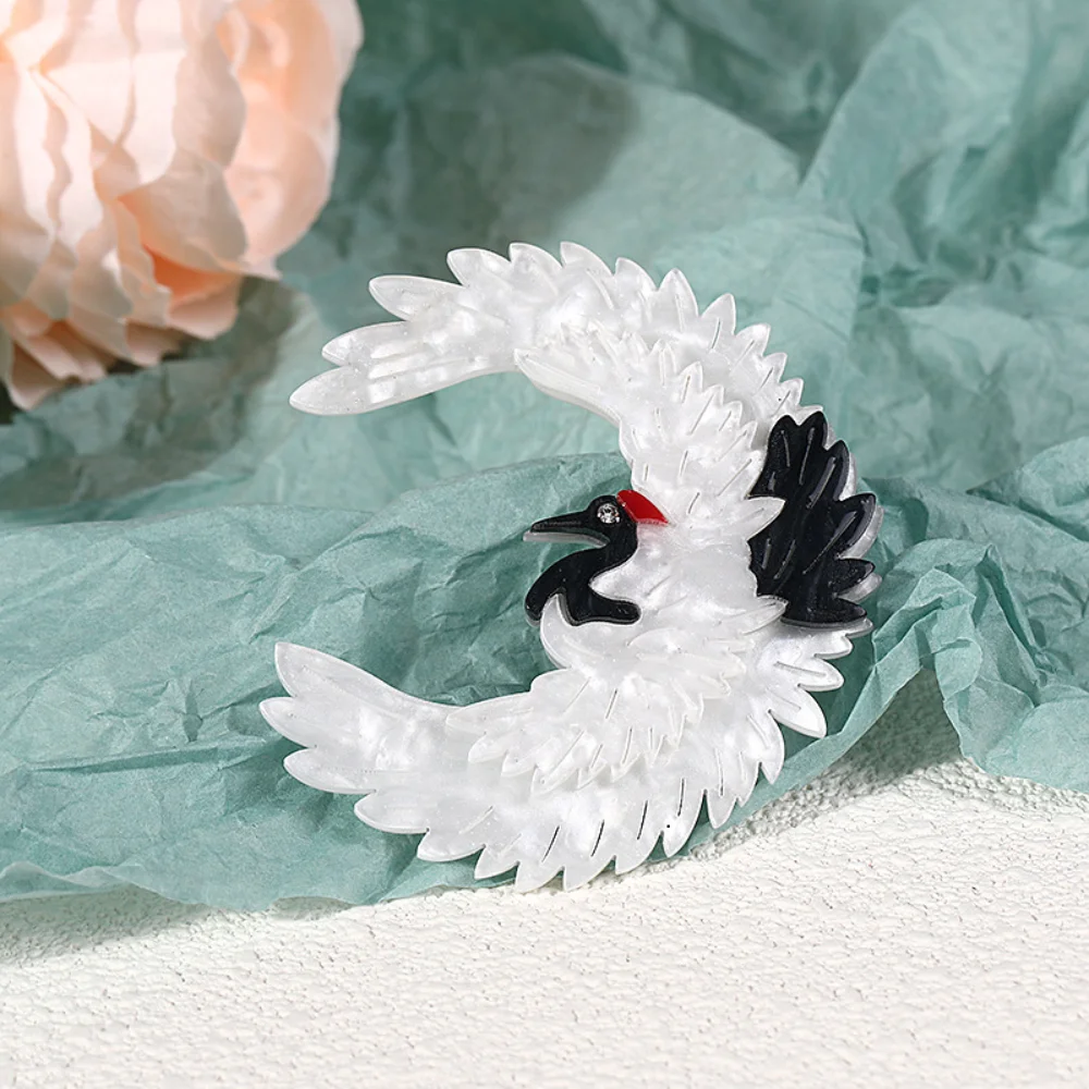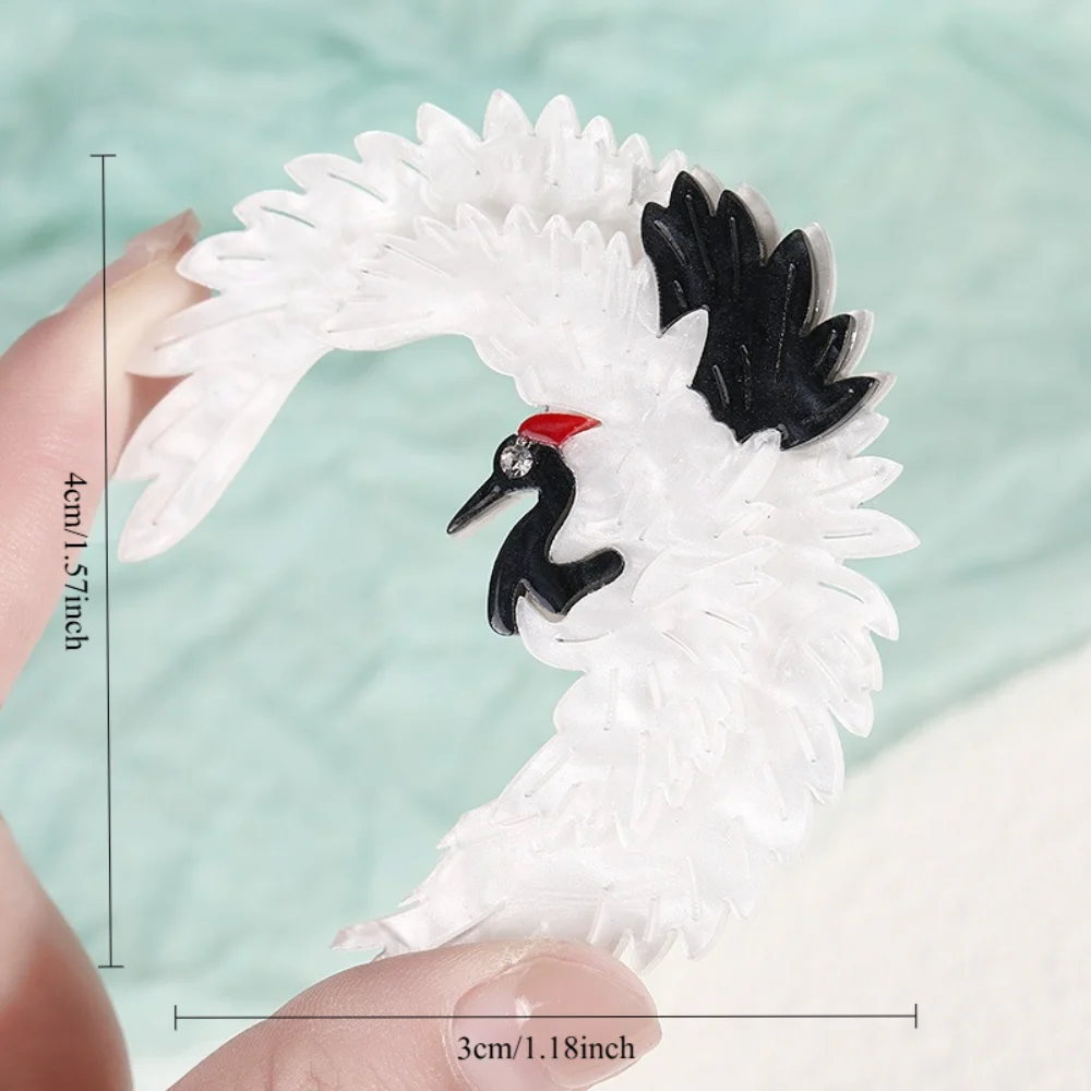 Transform your look with this exquisite crane-shaped acrylic brooch. Its delicate crescent design combines modern minimalism with bold color accents, making it versatile for unisex fashion. Crafted from translucent acrylic, the brooch features a stylized crane with a black body, a vibrant red crest, and layered feather details that evoke a sense of airy elegance. Its sleek, minimalistic design seamlessly complements various outfits—whether jazzing up a jacket, backpack, or hat. Light and comfortable to wear, this accessory offers an effortless way to add a touch of sophistication and artistic flair to your daily wardrobe. Perfect for anyone who loves unique, stylish details that reflect personality and taste.