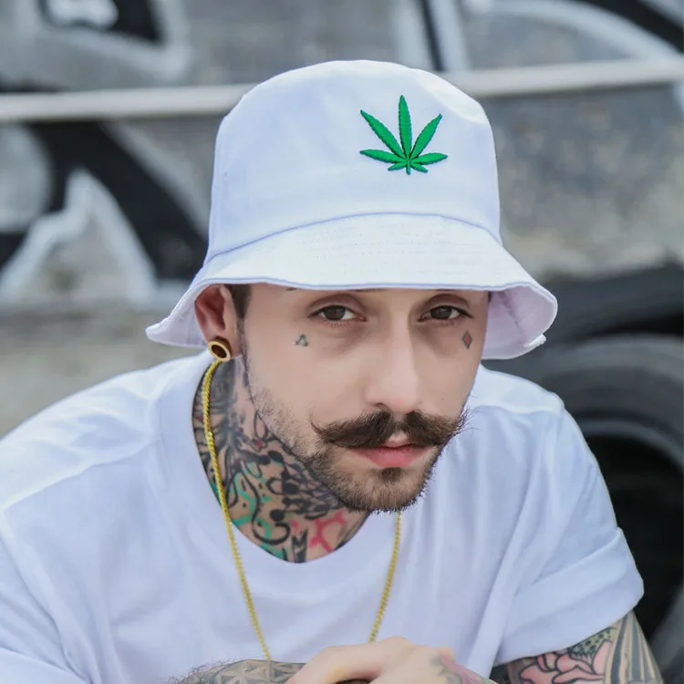 Experience the perfect blend of fashion and practicality with this unisex bucket hat. Crafted from a comfortable cotton-polyester blend, it offers durability and breathability for all seasons. Its classic flat top and wide, downward-sloping brim provide excellent sun protection while adding a touch of relaxed style to your outdoor look. Available in three versatile colors—white, black, and colorful—you can effortlessly match it with your everyday outfits. The detailed embroidery featuring a vibrant green marijuana leaf adds a bold, eye-catching element that stands out. Designed for casual wear, this hat fits comfortably on heads with a circumference of 56-59 cm. Whether you're heading to the beach or enjoying a stroll, this hat combines comfort, style, and functionality seamlessly.