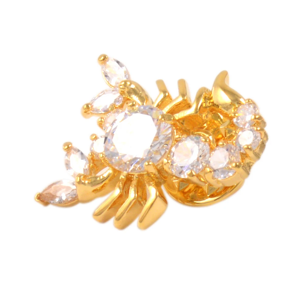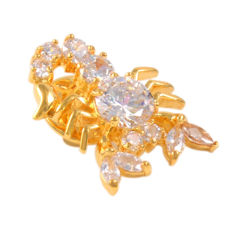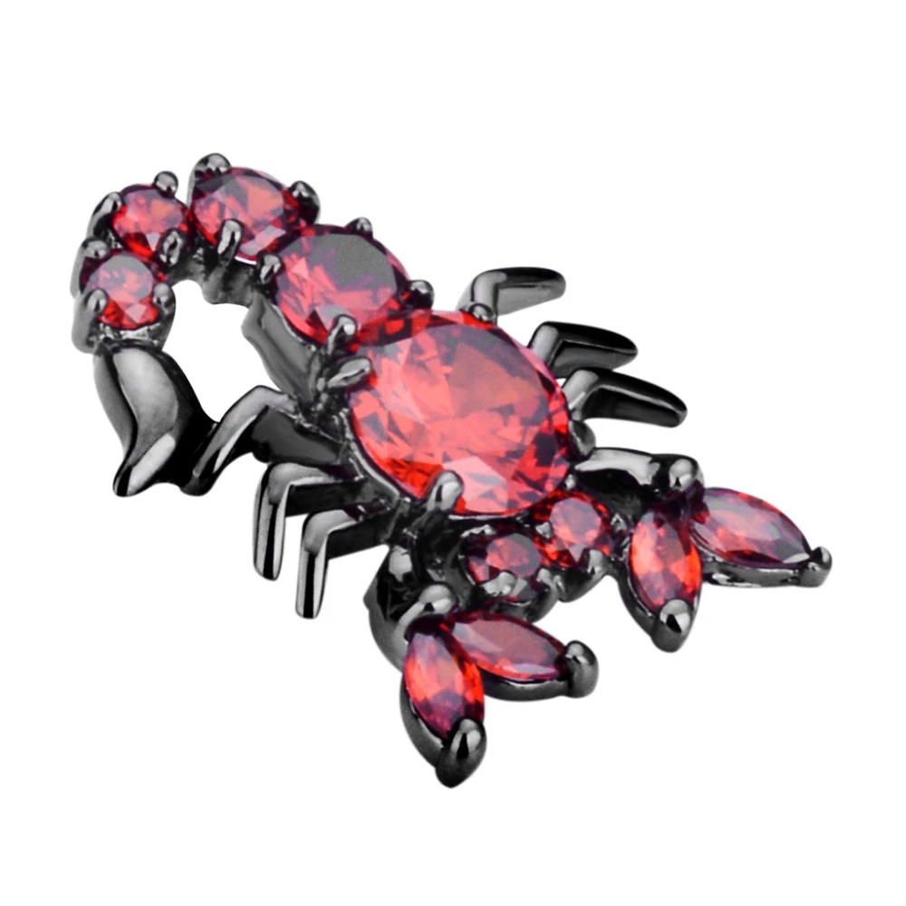 - Features a detailed design with gemstones cut into round and marquise shapes, creating a textured, realistic scorpion image with open gemstone settings for shine.