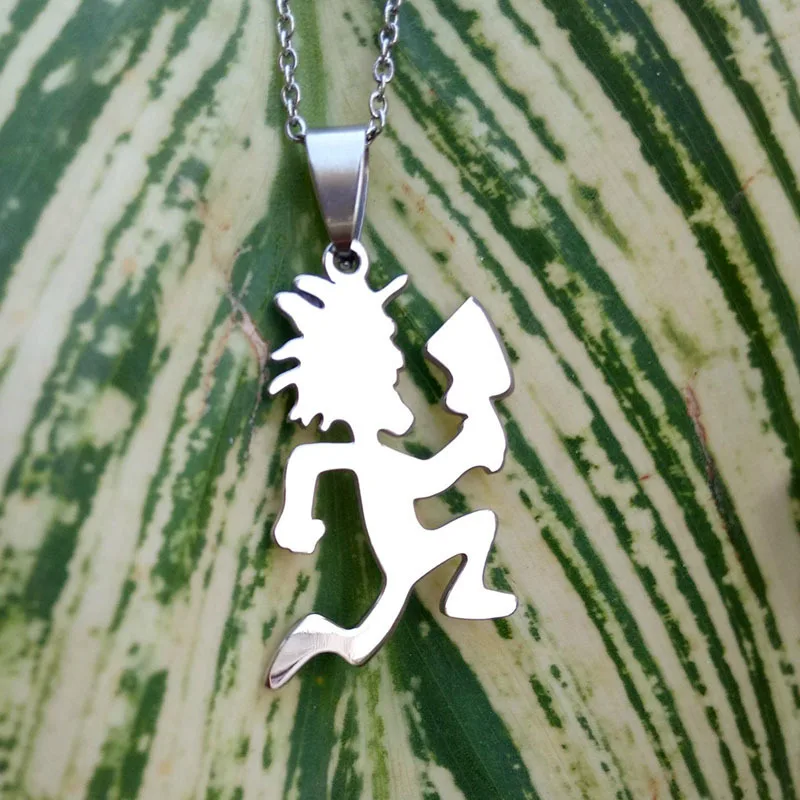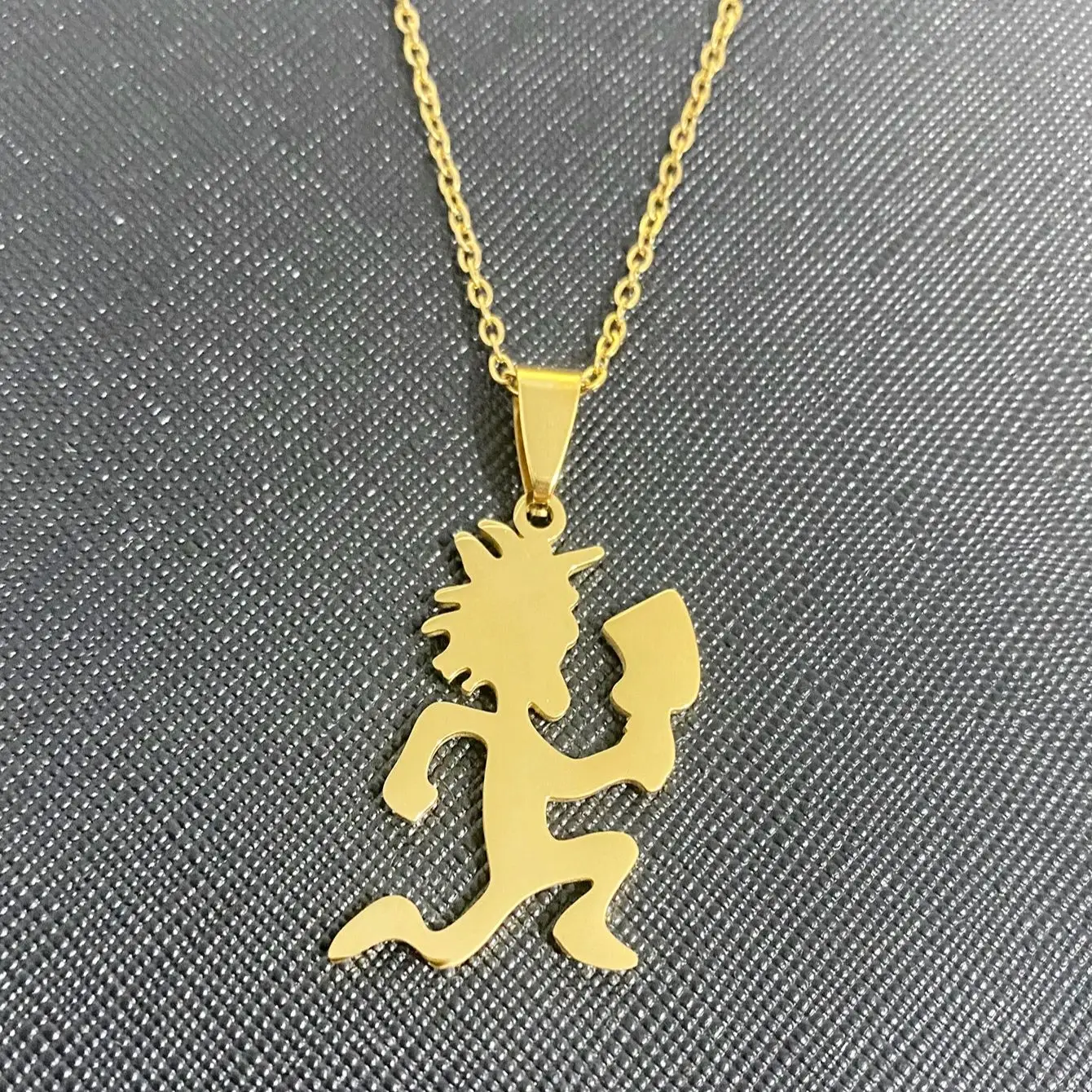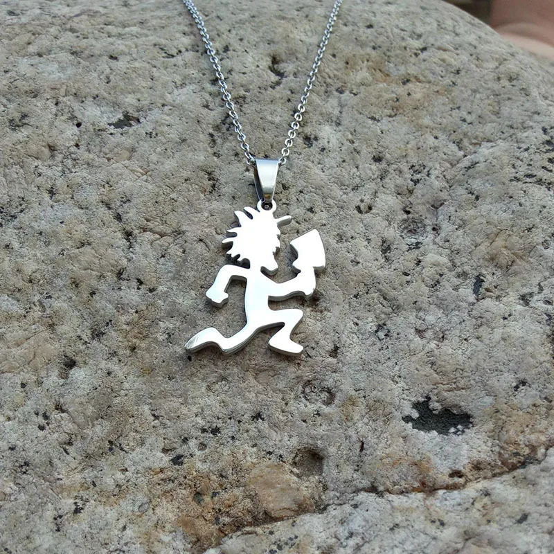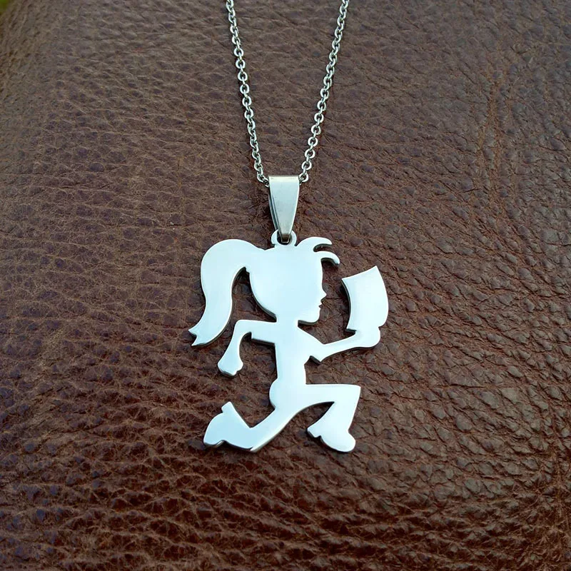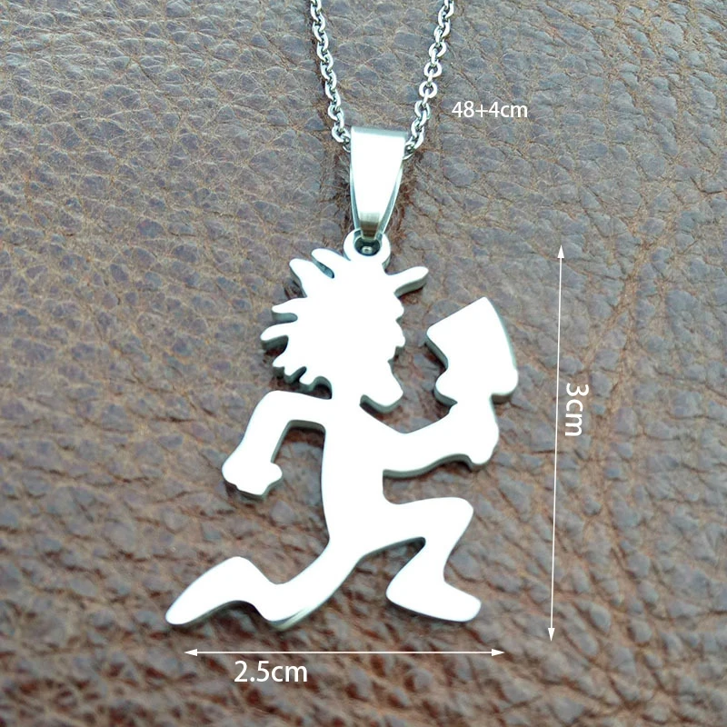 Imagine adding a bold, playful touch to your style with this unisex stainless steel pendant necklace. Featuring a distinctive hatchet man charm, the design captures a cartoonish figure with exaggerated, spiky hair, holding a small item in a rebellious pose. Crafted from high-quality stainless steel, the pendant boasts a shiny, smooth, reflective finish, emphasizing its modern and edgy aesthetic. The flat, silhouette-like design creates a clean and minimalistic look, perfect for casual or sporty outfits. The matching linked chain completes this eye-catching piece, making it an ideal accessory to showcase your personality and vibe. Light yet substantial, this necklace promises durability and a striking visual impact for everyday wear.