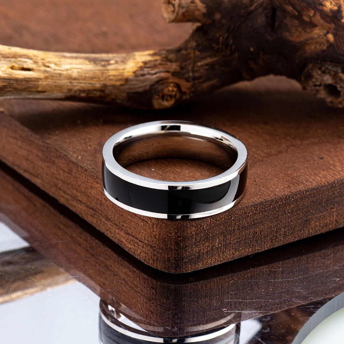 - Technical specifications: 6mm or 8mm surface width, stainless steel composition, moissanite inlay, compatible with all occasions, unisex design.