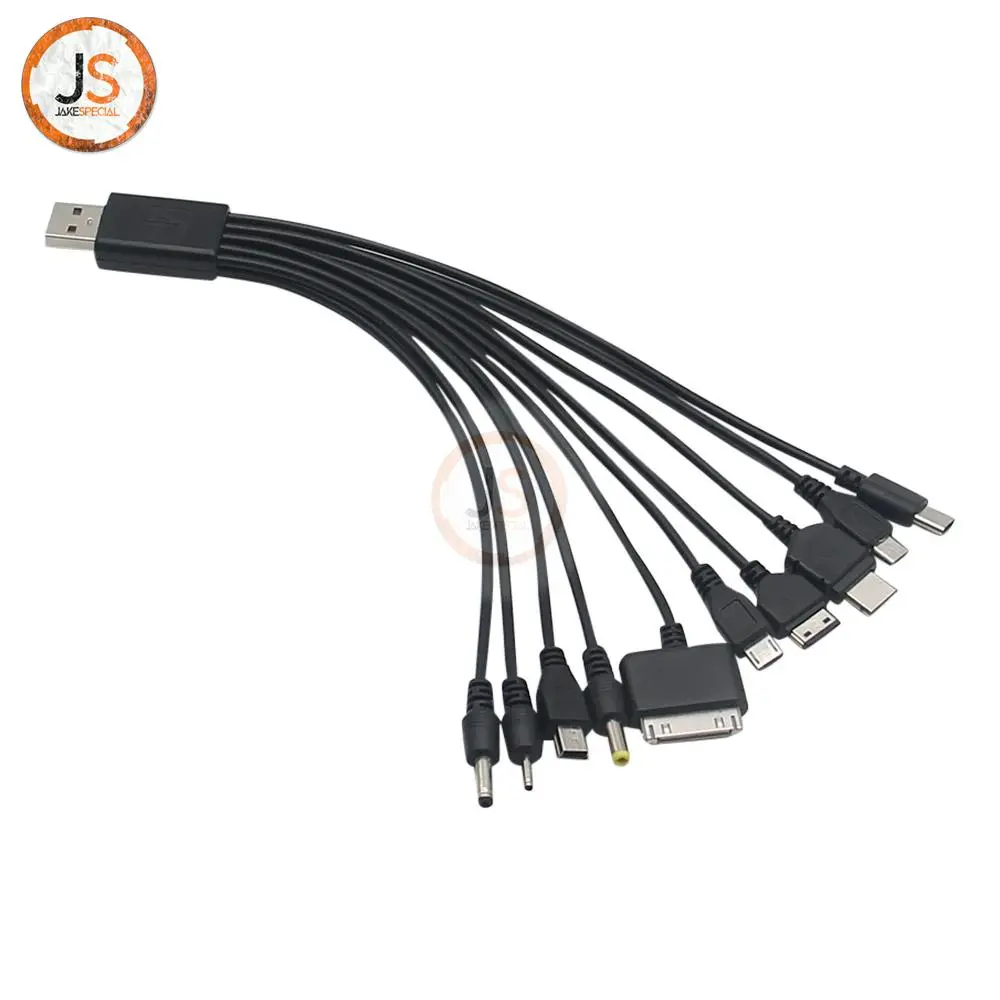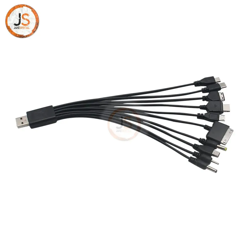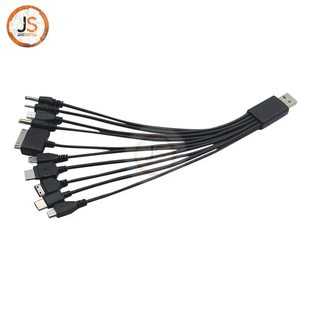 The Universal 1-to-10 USB Charger Cable features a USB 2.0 interface and a unique multiple jack design, allowing you to charge various tablets and phones effortlessly. With its sleek black finish, this adapter cable is both stylish and practical. It branches out into ten distinct connectors, including Micro USB, USB-C, Apple 30-pin, and Lightning connector types, catering to a wide range of devices. Each connector is fitted with durable molded plastic housing for enhanced longevity. Enjoy the flexibility offered by the substantial length of the cable, making it easy to connect your devices from varying distances to a power outlet.