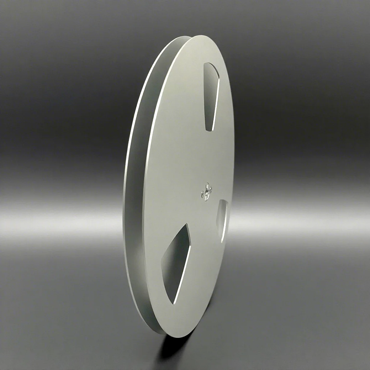 Enhance your reel-to-reel tape recorder with this universal 10-inch aluminum tape platter, measuring 269mm in diameter and 1.2mm thick, crafted from high-quality aluminum alloy with an anodized, matte light gray finish. Its sleek, industrial design features finely machined edges and a durable surface, ensuring longevity and professional performance. Compatible with Revox, Studer, Teac, AKAI, and Pioneer models, provided the device has mounting holes. This brand-new, rigorously tested accessory is ideal for professional audio recording setups, offering reliability and a high-quality, minimalist appearance to your equipment.