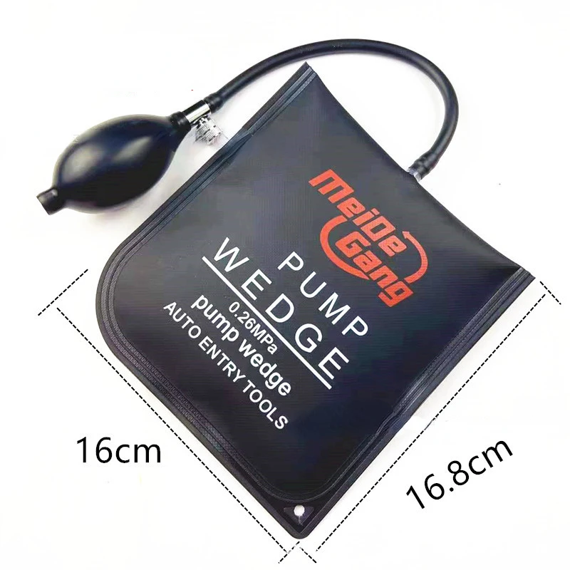 The Universal Auto Door Opening Tool is your ultimate solution for emergency unlocking and car repairs. Featuring a sleek black air cushion with a slightly rounded design, it ensures practical use when you need it most. With the prominent brand name “Meide” partially visible in red, this inflatable device creates a gap in your vehicle's door for safe and efficient unlocking. The ergonomically designed flexible black tube connects directly to the valve system for easy inflation, highlighting user convenience. Built for durability, this tool is perfect for DIY enthusiasts and professionals alike, making it an essential addition to your repair kit.