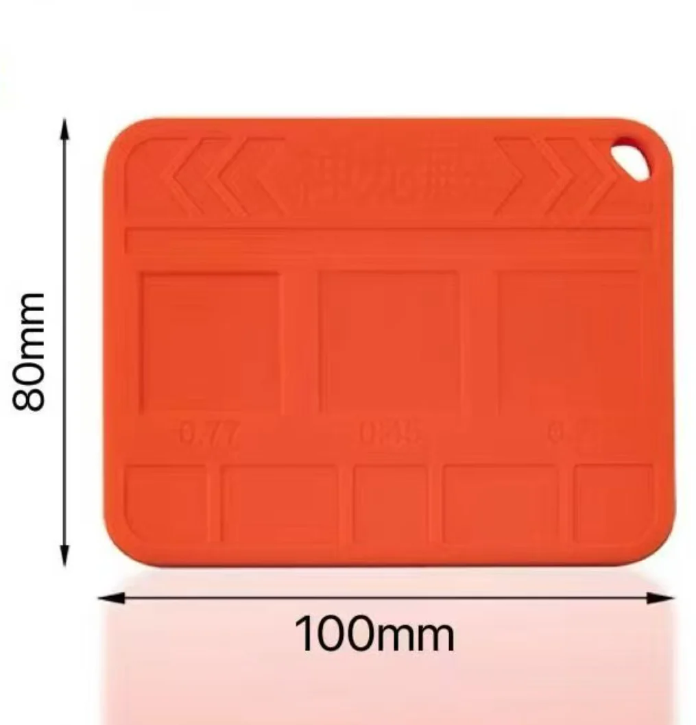 Enhance your electronics repair with this durable, versatile BGA stencil positioning base, crafted from heat-resistant silicone or rubber. Its vibrant blue or orange color not only makes it easy to identify but also offers excellent flexibility and stability during delicate soldering and reballing tasks. The blue base features a hexagonal shape with three raised rectangular measurement sections (0.4mm, 0.5mm, 0.8mm), ideal for precise alignment of phone CPU and IC chips. Meanwhile, the orange base provides three square sections (0.77mm, 0.45mm, 0.3mm) with engraved markings, perfect for insulation and exact positioning. Both bases are designed to improve precision, reduce errors, and streamline your repair workflow, making intricate soldering work more manageable and accurate.
