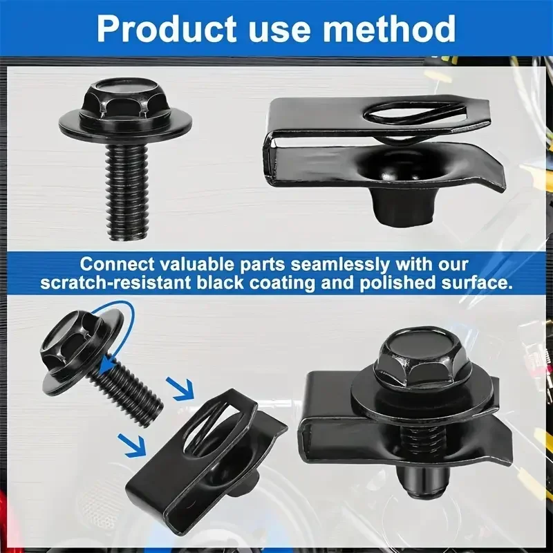 - Compatible with U-type clips and various vehicle models, providing versatile options for securing fenders, bumpers, and panels effectively.