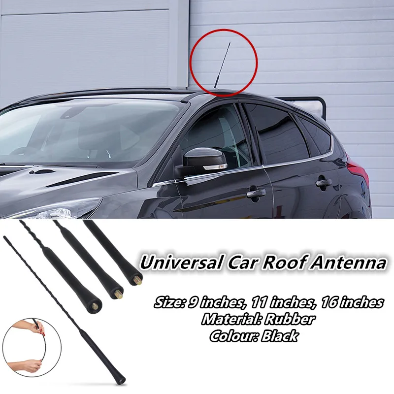 Experience improved radio signal reception with this sleek, durable whip antenna designed for universal vehicle fitment. Made from resilient rubber, it withstands long-term UV exposure, ensuring reliable performance in all weather conditions. Available in three practical lengths—9, 11, and 16″—this antenna seamlessly combines modern style with functionality. Its streamlined, black cylindrical design complements any vehicle’s roofline, adding a subtle, rugged touch. Equipped with a 6mm mounting hole, it’s easy to install with included compatible screws. Whether you're listening to FM or AM stations, this antenna guarantees enhanced stereo signal quality, giving you clear, consistent audio. Transform your driving experience today with this high-quality replacement antenna that combines practicality with aesthetic appeal.