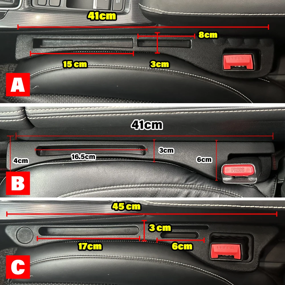 Experience a clutter-free and organized vehicle with this this universal car seat gap filler. Crafted from tasteless PU leather, it offers a sleek, minimalist look that blends smoothly into your car's interior. Measuring 44.5 cm long and 7.3 cm wide, it comfortably fits both the driver’s and passenger’s sides, thanks to its elastic 5cm thick strip. The mobile phone groove keeps your device securely in place, while the hole design ensures seat belt functionality remains unaffected. Easy to install and remove, this accessory prevents keys, coins, and phone slips into the gap, making your drives safer and more comfortable. Its subtle aesthetic complements any car model with practicality and style.