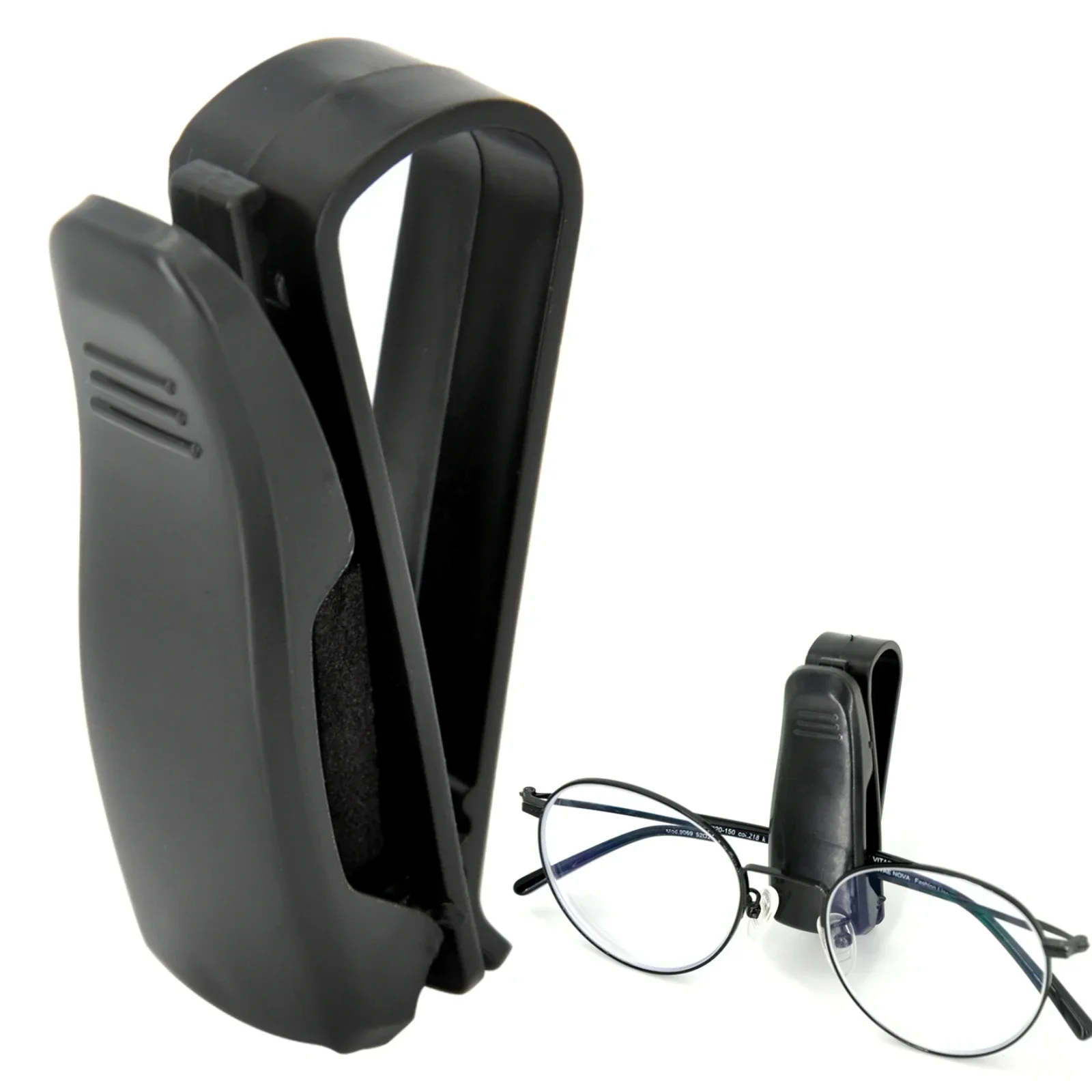 Enhance your driving experience with this this universal car sun visor glasses holder. Crafted from durable ABS material, it offers a sleek, modern look that blends seamlessly into any vehicle interior. Its compact size of 6.5 cm by 2.5 cm by 2.5 cm makes it unobtrusive yet highly functional, providing a secure and accessible space for your glasses, cards, or tickets. The soft jaws gently grip your items without scratching, ensuring they stay protected. Easy to install, it securely clips onto your sun visor without obstructing your view, allowing you quick access to essentials while maintaining a tidy car interior. Built to last and lightweight at only 10 grams, this accessory combines practicality with style for a better driving environment.