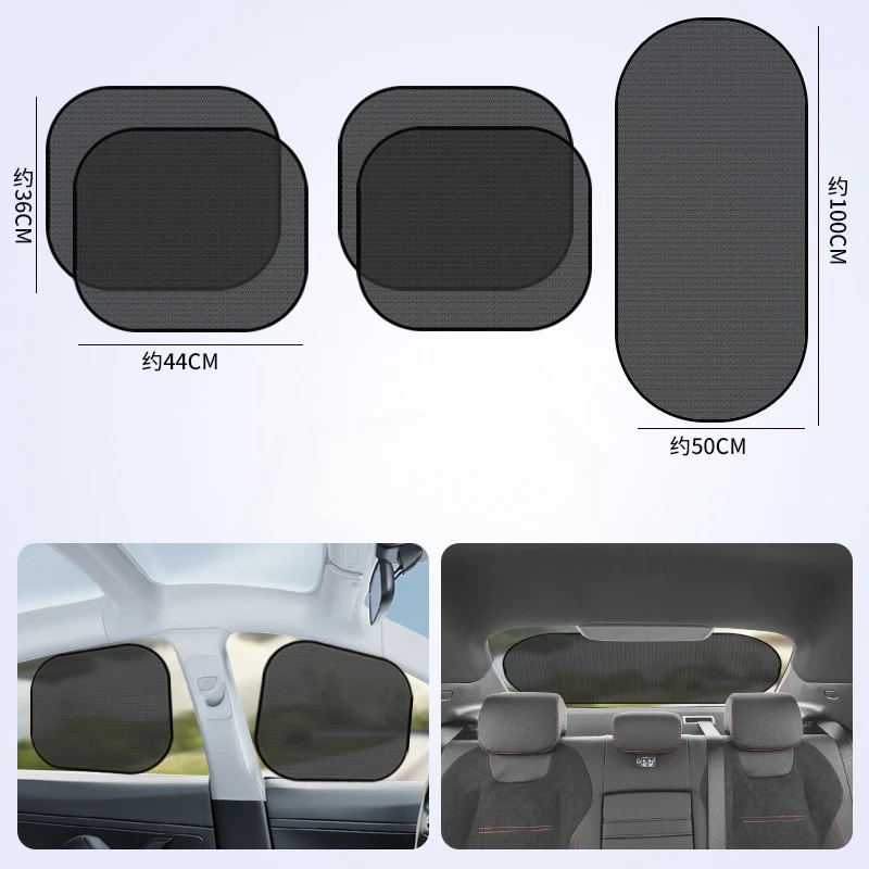 Enjoy a cooler, more comfortable ride with this versatile five-piece universal car sunshade set, crafted from high-quality nylon mesh. Designed with suction cups for stable attachment, these shades fit most vehicle windows, including cars, SUVs, taxis, and commercial vehicles. The set includes side blocks measuring approximately 44 x 36 cm, an inclined block around 65 x 38 cm, and a rear block roughly 100 x 50 cm, providing comprehensive coverage. Their lightweight, semi-translucent mesh blocks sunlight, snow, frost, and falling leaves, ensuring heat insulation and cooling without obstructing your view. Easy to install and remove, this practical accessory enhances interior comfort and protection.