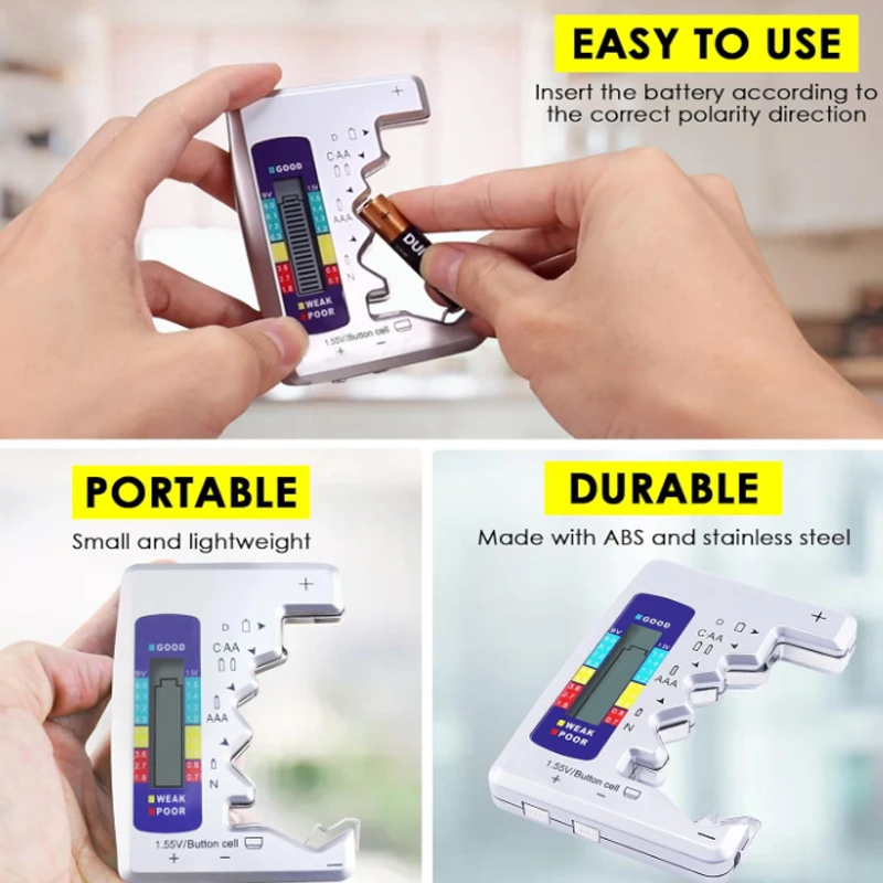 - The this battery tester has a compact, lightweight design measuring 92 x 63 x 14 mm, perfect for home, office, and workshop use. Its slim profile allows for easy portability.