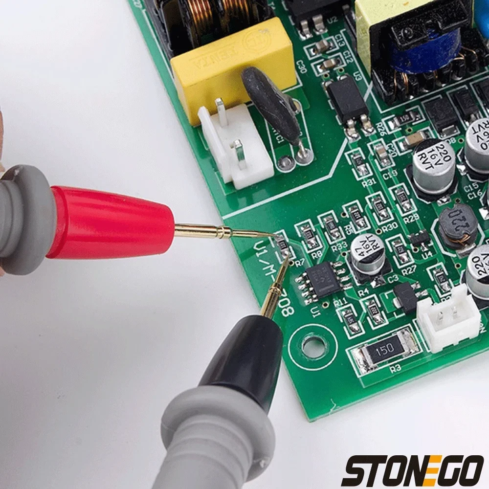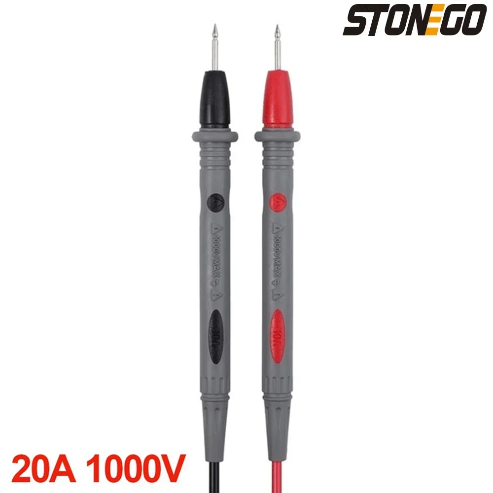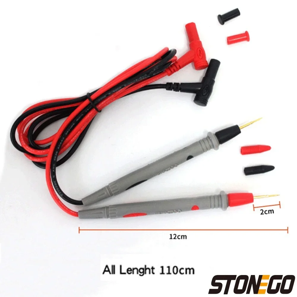 Experience precise electronic measurements with this durable universal digital multimeter probe test set, featuring a pair of sleek, color-coded (red and black) probes with 96cm coaxial cables and a total length of approximately 110cm. Designed for safety and comfort, each probe has a textured, rubber-shrouded handle, protective tip caps, and a universal multi-meter plug compatible with various models. Capable of measuring up to 1000V and 20A, these probes are ideal for testing resistors, capacitors, and other SMD components, making them a reliable tool for detailed electronic troubleshooting.