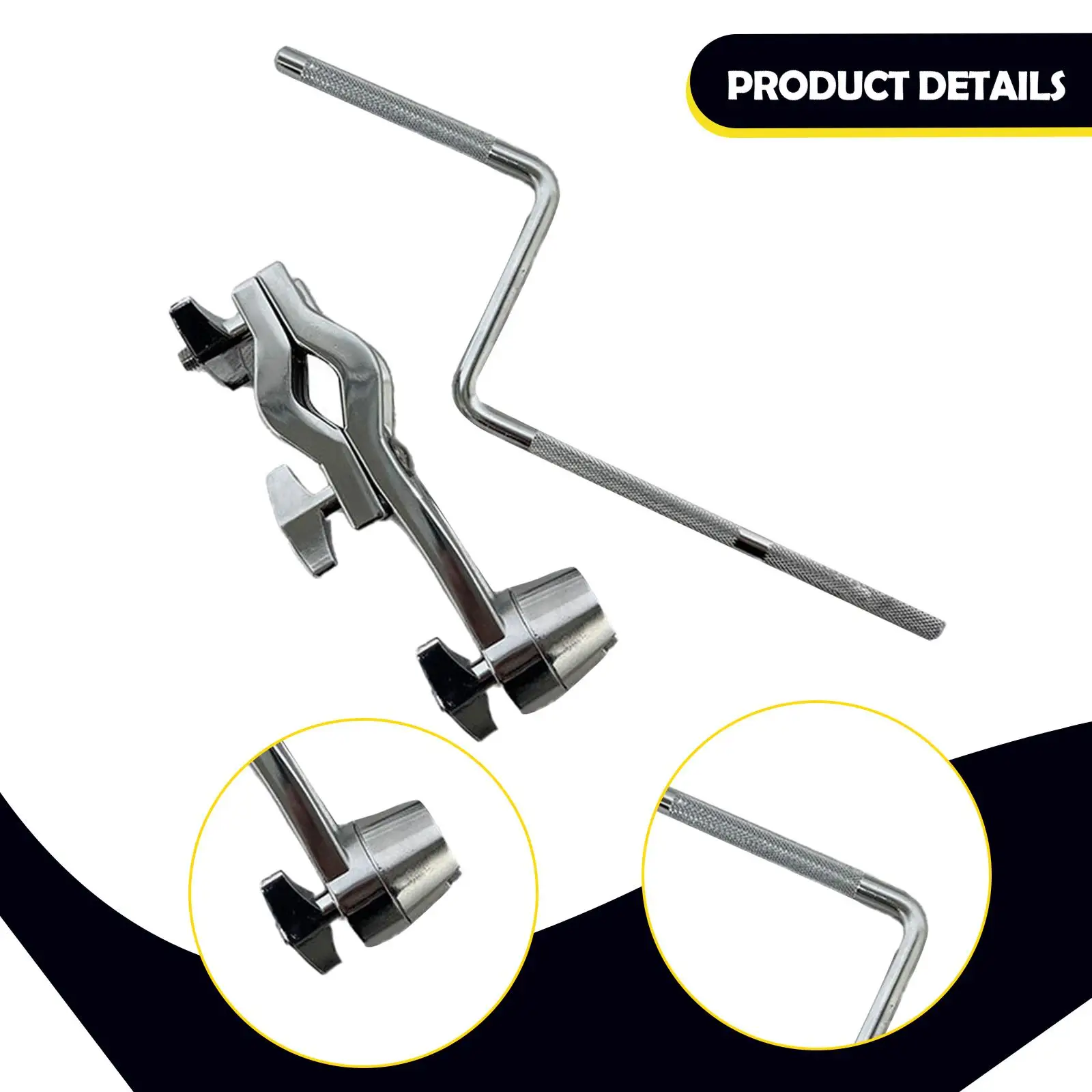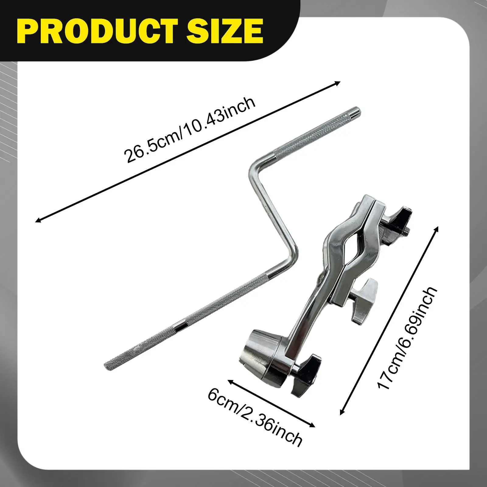 Enhance your drum setup with this high-quality universal drum mounting bracket crafted from durable aluminum alloy. Measuring 17cm x 6cm x 3cm, with a 26.5cm bracket, it features a powerful clamping mechanism capable of multi-angle rotation to perfectly position your cowbell or percussion accessories. Compatible with most drum stands and supports, it enables space-saving expansion of your drum kit without the need for extra stands. Its polished, silver-colored finish and ergonomic, sleek design provide a professional appearance while ensuring stability during performances, rehearsals, or studio recordings. Trust this robust, versatile clamp to keep your percussion accessories securely in place.