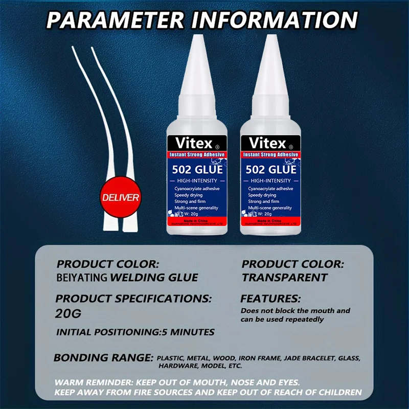 Achieve quick, strong, and waterproof bonds with this versatile 50ml universal super glue, available in 1, 2, or 3-piece packs. Featuring an anti-clog cap for precise application and an airtight tube to prevent drying, it bonds instantly within 30 seconds to a wide range of materials including metal, plastic, ceramics, rubber, acrylic, paper, leather, and jewelry. Made without high-concern chemicals and compliant with REACH standards, this durable adhesive is ideal for indoor, outdoor, workshop, and everyday repair projects, offering long-lasting results with a sleek, professional design.