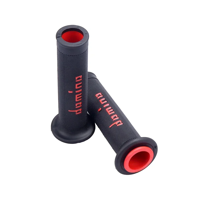 Transform your motorcycle’s look and feel with this stylish, durable handlebar grips. Crafted from soft, non-slip silicone, they provide a comfortable, firm hold while enhancing your bike’s aesthetic appeal. These versatile grips are designed for universal use on 22mm and 24mm handlebars, fitting many motorcycle models seamlessly. Their textured surface features fine vertical lines and horizontal ridges, ensuring a secure grip even in wet conditions. The bold red branding creates a distinct visual contrast while the bright red interior lining adds a splash of color when installed. Available in a wide range of colors, these grips allow you to personalize your motorcycle to match your style, making every ride both safe and stylish.