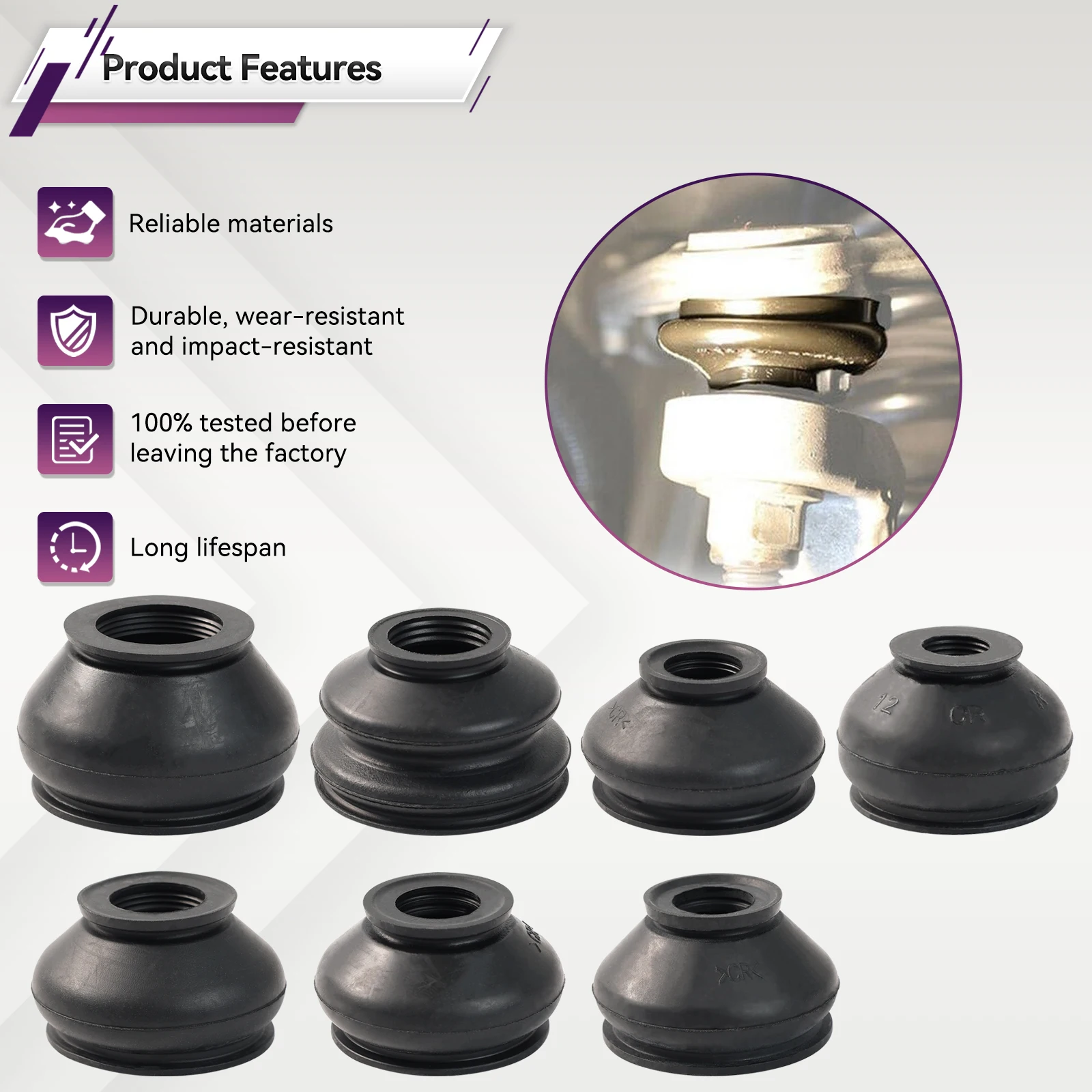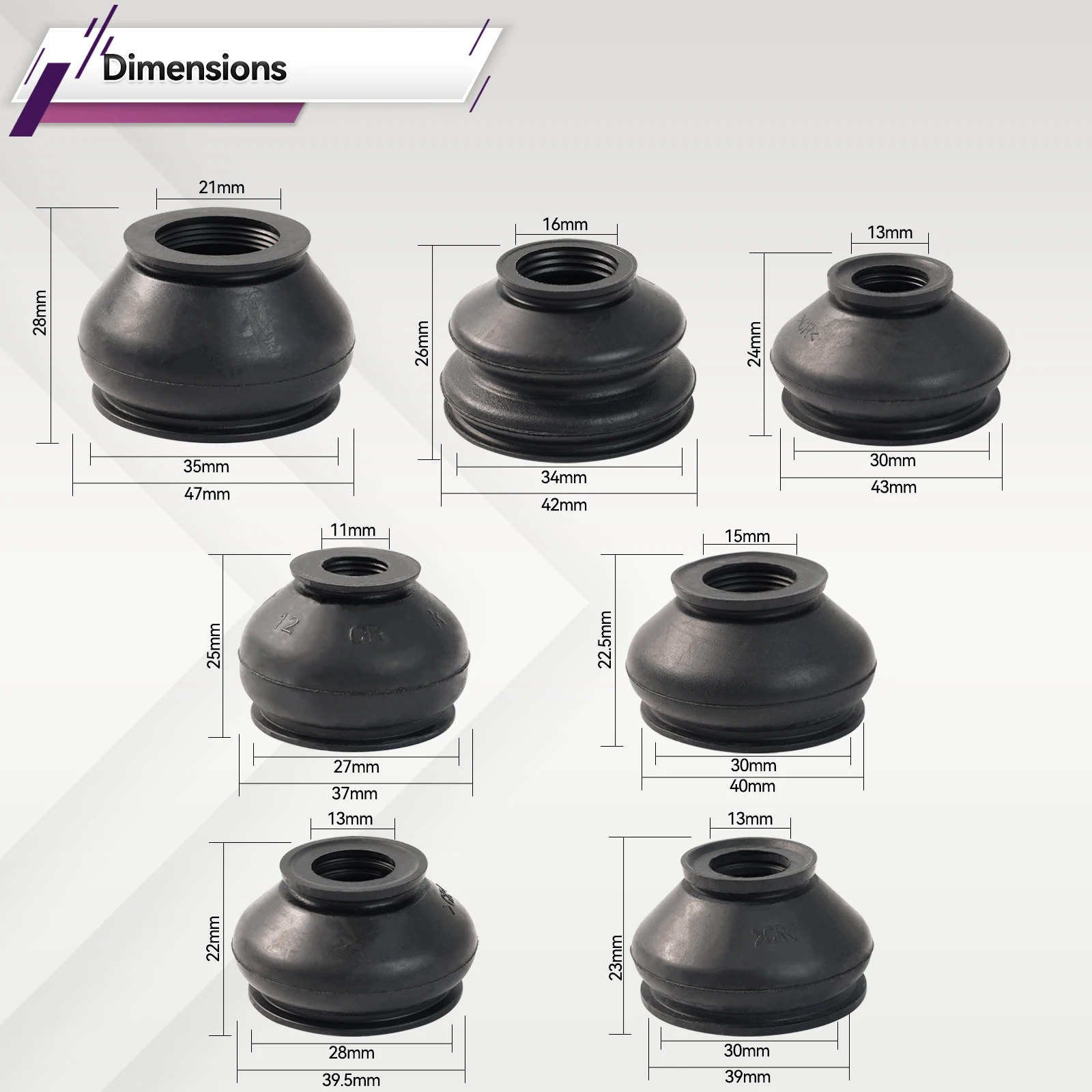 Explore the versatility and robustness of this Universal Rubber Ball Joint Boot Dust Cover Cap Tie Rod Linkages End Set. This kit features 14 essential pieces, designed to enhance your vehicle’s performance while ensuring durability. Each boot is crafted from high-quality black rubber, offering superior flexibility that minimizes wear during full lock turns. With seven different sizes, this set caters to various vehicle types, ensuring a snug and secure fit. The tapered design facilitates easy installation, making it an excellent upgrade for any automotive enthusiast. Say goodbye to premature wear on your suspension parts and enjoy improved handling and fuel efficiency!