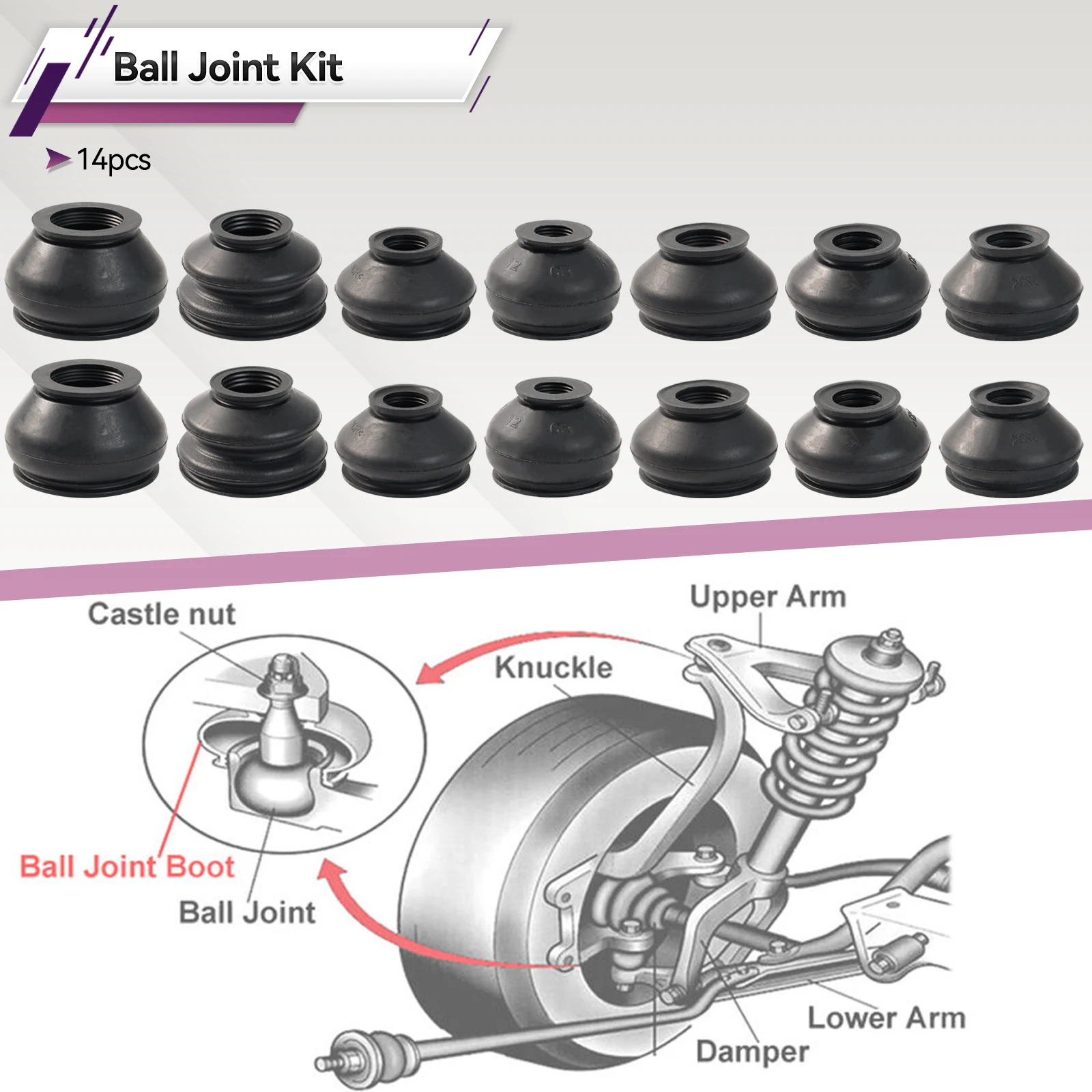 Don't miss the chance to enhance your vehicle's performance with this Universal Rubber Ball Joint Boot Dust Cover Set. Imagine the confidence you'll feel knowing that your vehicle is equipped with the best components to improve handling and prolong tire life. With easy installation and a perfect fit for various applications, this kit is a must-have for any automotive enthusiast. Get yours today and experience the difference!