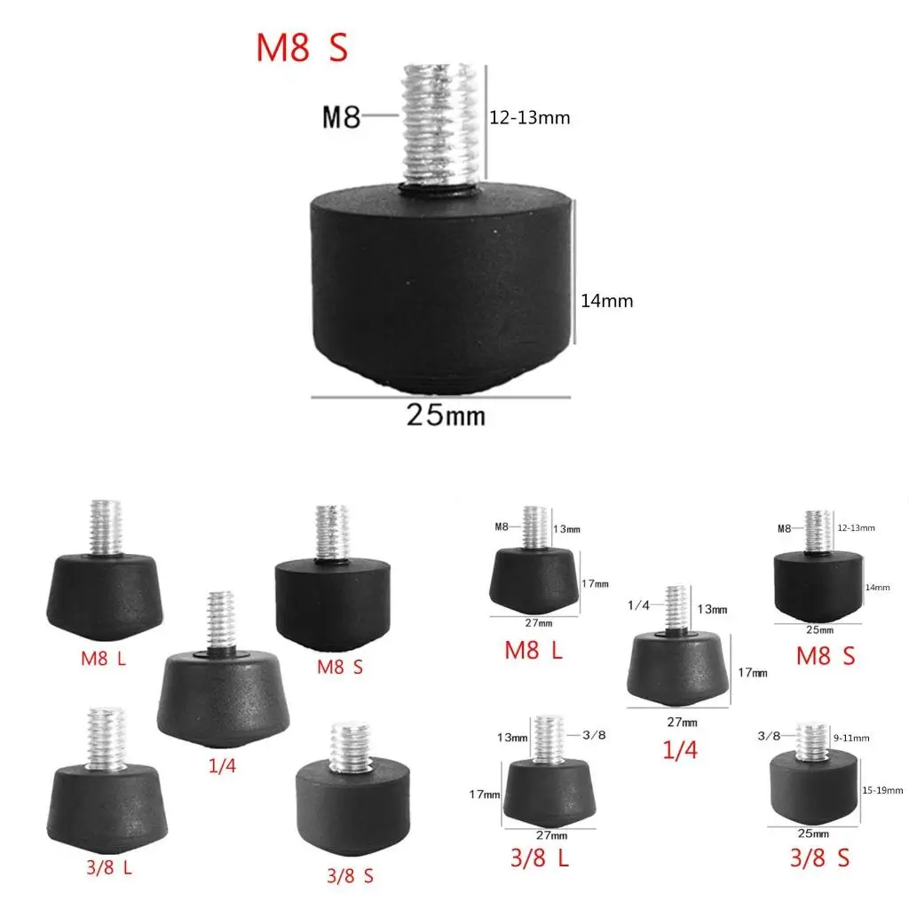 Imagine confidently setting up your tripod or monopod, knowing these sleek rubber foot spikes provide optimal grip and durability. Crafted from durable rubber and metal, they seamlessly combine functionality with a minimalist aesthetic. The rounded conical bases measure approximately 27mm in diameter, offering a streamlined, smooth surface that enhances anti-slip performance on various surfaces. Compatible with standard screw sizes—1/4 inch, 3/8 inch, and M8—these foot spikes fit most tripods and monopods, whether for indoor photography or outdoor shoots. Their compact dimensions of about 27x17x13 mm make installation straightforward. In your hands, they're not just accessories—they become reliable tools that support your creative vision with stability and confidence.