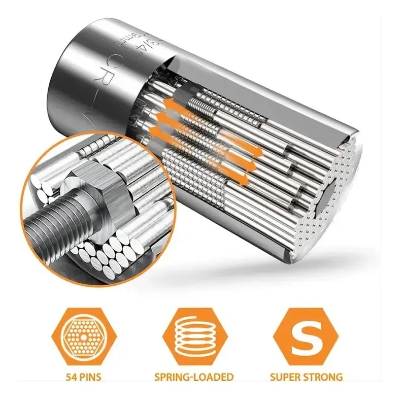 - Self-adjusting feature fits all sizes, securing any shape without wasting time searching for the right tool.