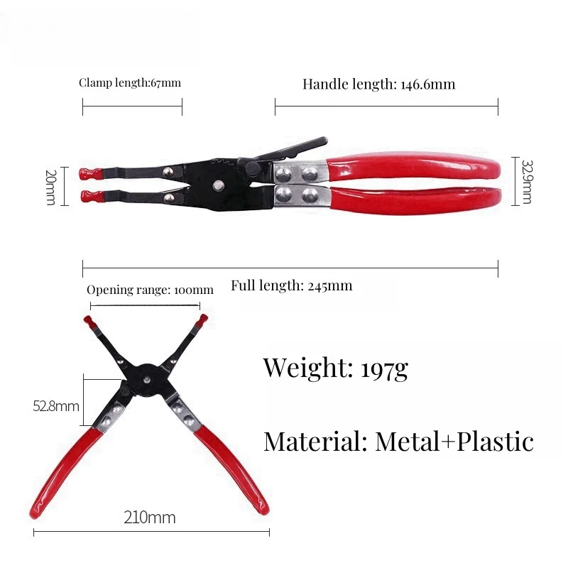 The Universal Soldering Aid Pliers are the ultimate combination of strength, comfort, and functionality, expertly crafted from high-quality carbon steel for exceptional durability. The robust black body is complemented by striking bright red cushioned handles, designed for an ergonomic grip, ensuring comfort even during prolonged use. These versatile pliers excel in both car repairs and electrical projects, providing the ability to securely hold two wires simultaneously. Imagine effortlessly completing your welding tasks with this essential tool in hand, giving you confidence and precision with every use. Enhance your toolbox with a tool that deserves a permanent place in your workshop.