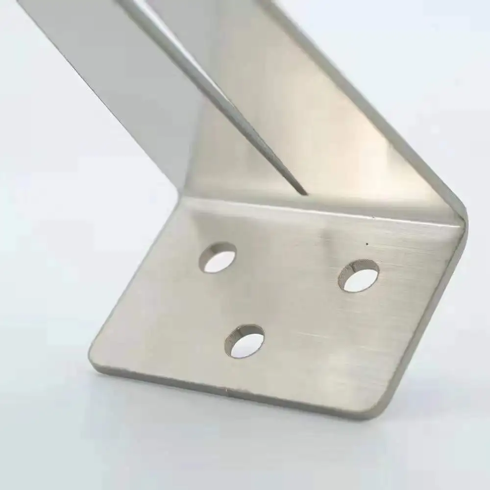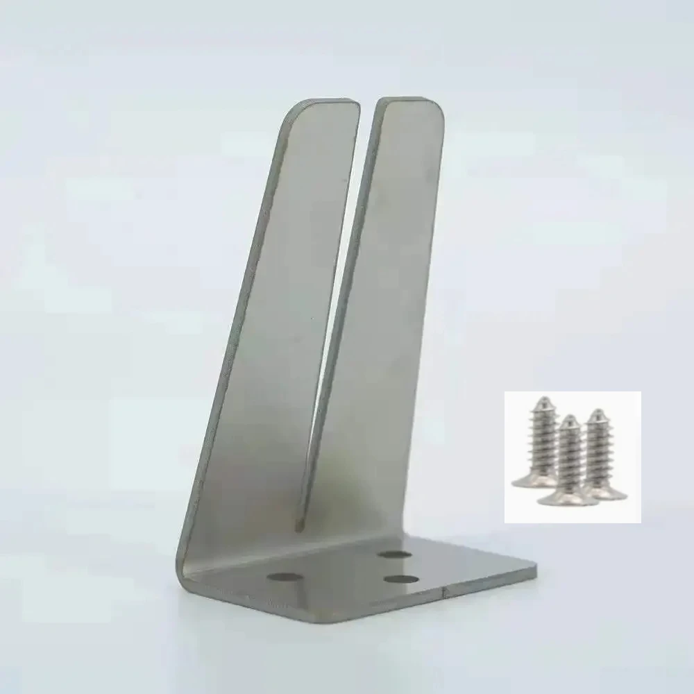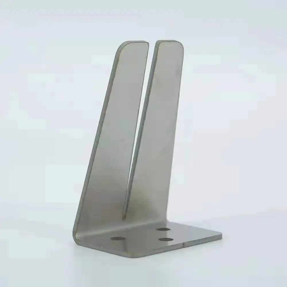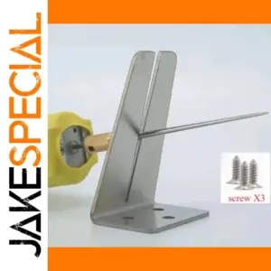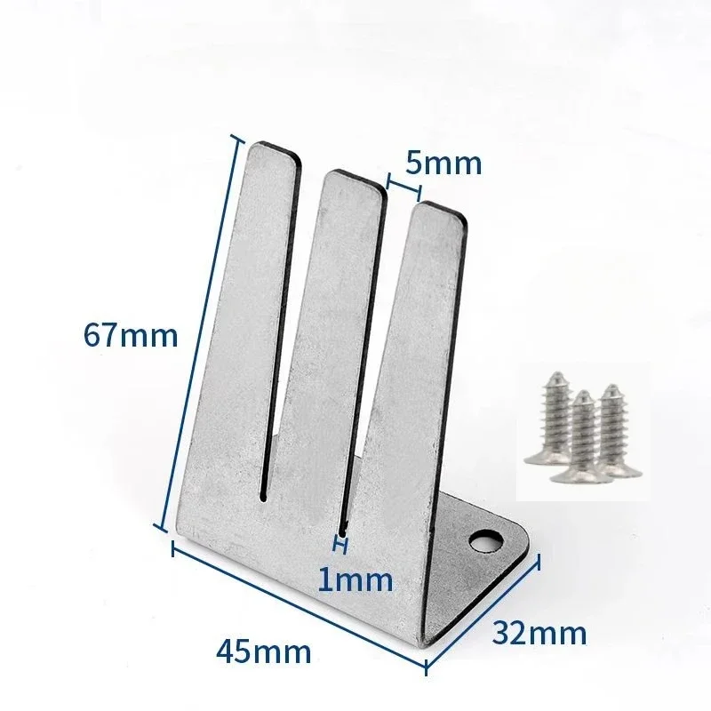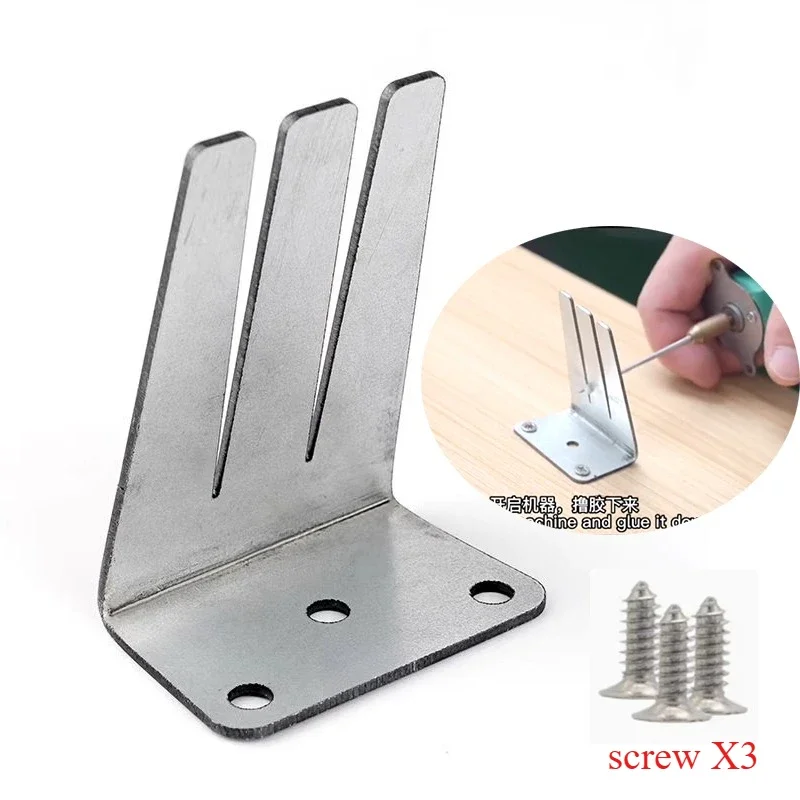 - The support stand is a matte-finish, L-shaped metallic holder with multiple drilled holes for stability and secure placement during work.