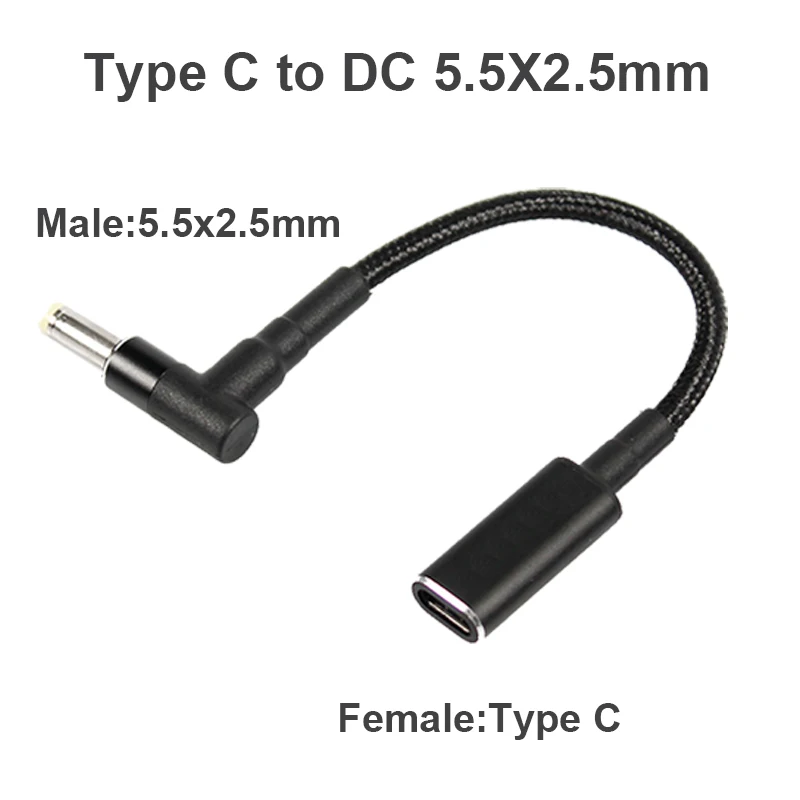- Flexible, braided USB-C to DC male cable with right-angle connectors designed for tight spaces, reducing strain and enhancing cable management for tidy setups.