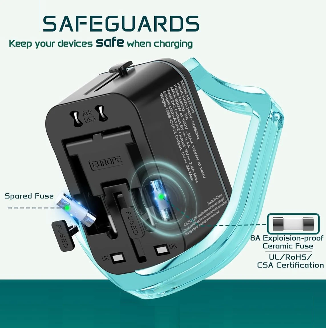 - Equipped with two 8A explosion-proof ceramic fuses, this device offers enhanced safety by protecting your electronics against power surges and overloads.