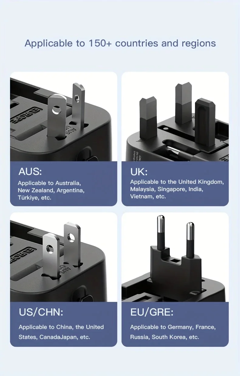 Imagine never needing multiple chargers or adapters again. With this all-in-one travel charger, you can confidently power your devices across the world. Its elegant yet practical design ensures it blends seamlessly with your travel gear, making each trip smoother and more enjoyable. Take advantage of its safety features and versatile compatibility—making every journey feel more connected and stress-free. Don't wait—enhance your travel experience today with this reliable, stylish, and portable power solution.