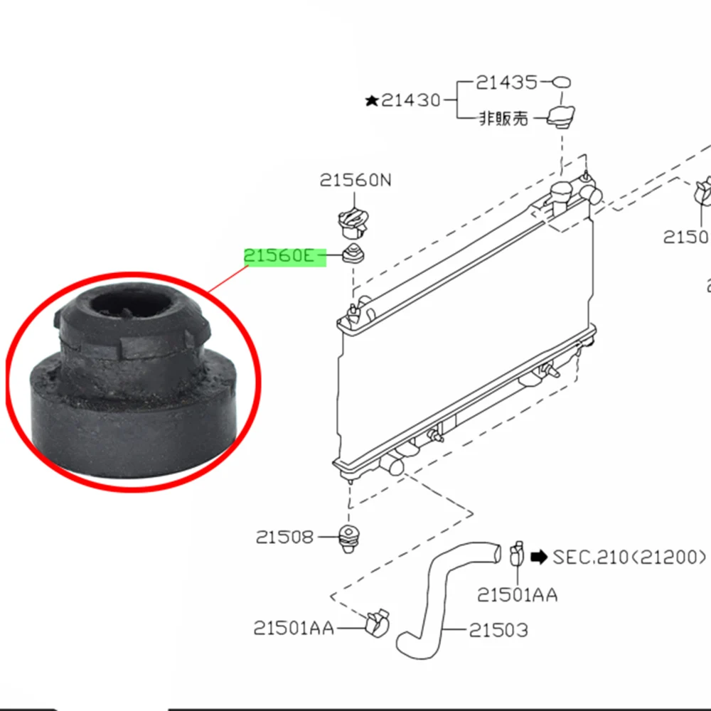 Investing in this set of upper radiator rubber mounting bushings enhances your vehicle's performance and longevity. Imagine driving with the peace of mind that comes from a secure and stable radiator. This is your chance to elevate your Nissan's efficiency and durability with high-quality components designed for maximum compatibility and reliability. Don't wait to elevate your vehicle—purchase this set today and experience the difference!