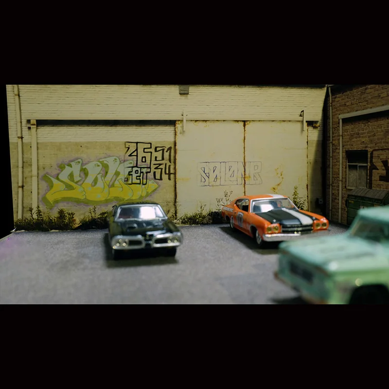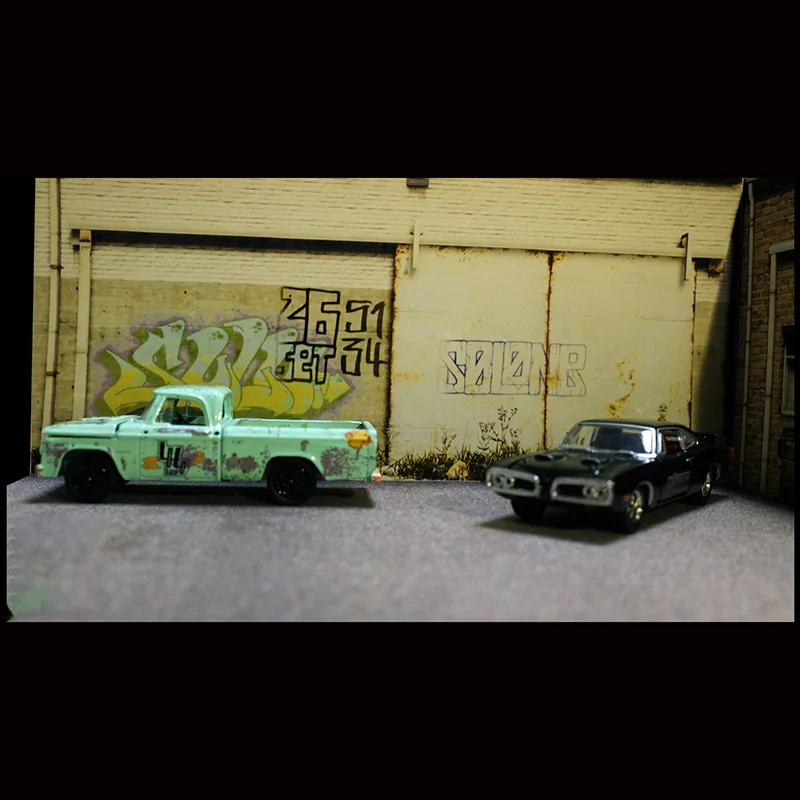 - Designed specifically for use as a warehouse, garage, street parking lot, or background scene, perfect for enhancing scale model car displays or dioramas.