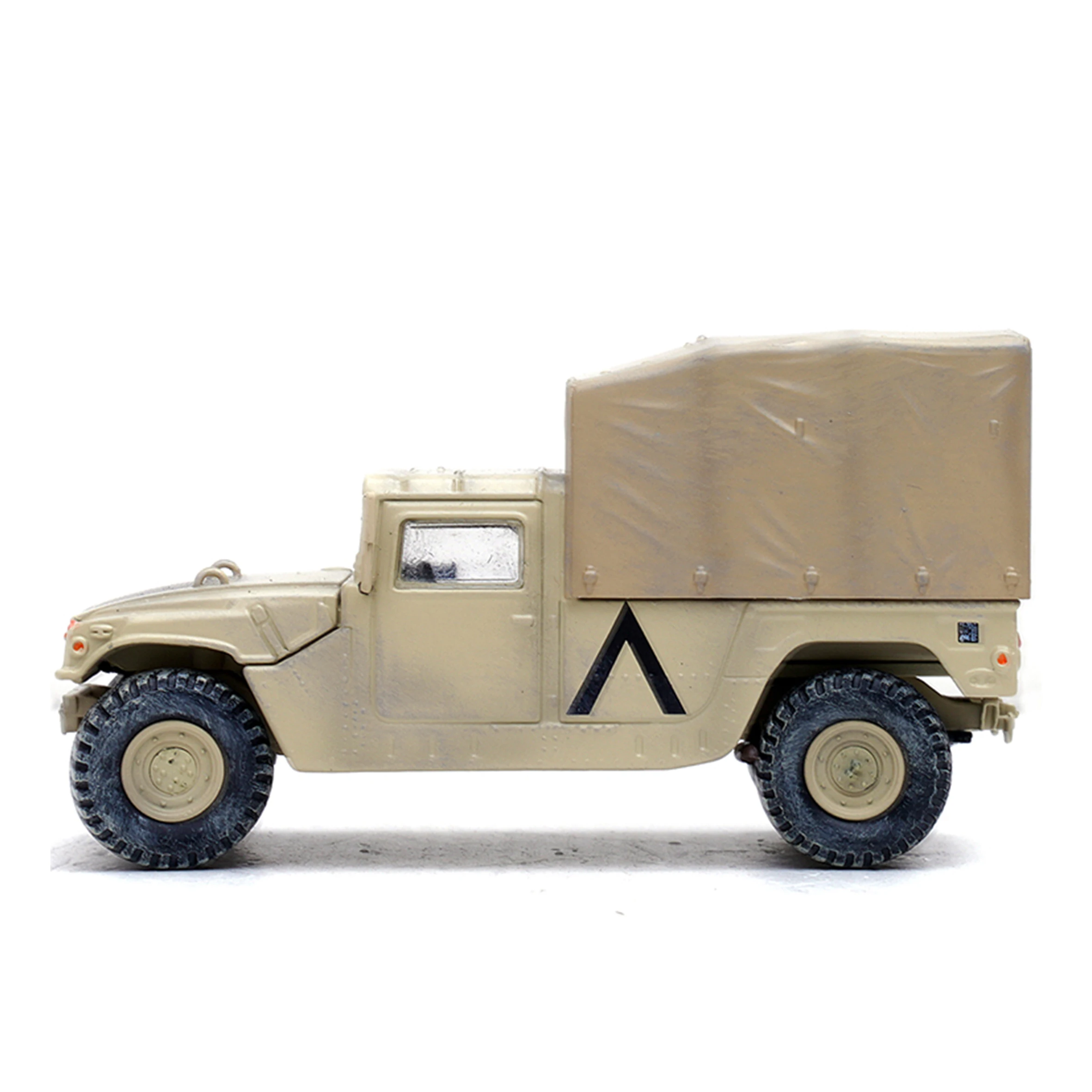 Elevate your collection with this distinctive 1/64 scale model of the US Carrier Vehicle (HMMWV), meticulously crafted to replicate the Gulf War design of the 1st Armored Division 3rd Combat Brigade. The model boasts a light tan color, embodying the authentic military camouflage associated with the era, complemented by a rich diecast finish that enhances its visual depth. Measuring approximately 7 cm in length, this detailed vehicle features turning rubber tires, an opening hood, and a realistic tan canopy that adds fabric-like texture. Perfect for display, this model is a fantastic addition for any serious enthusiast or collector.